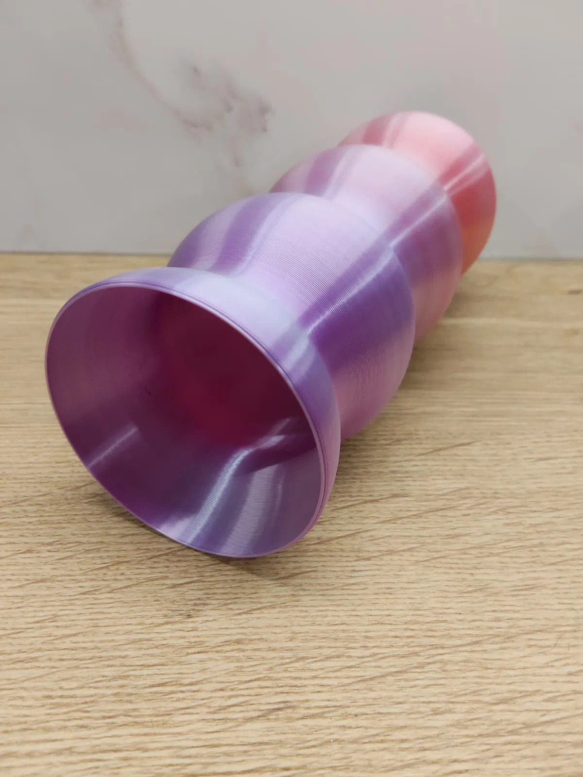 Nên in bằng vật liệu PLA ở độ phân giải cao để bắt được các chi tiết gợn sóng tinh xảo. Có thể cân nhắc dùng filament đổi màu để làm nổi bật hiệu ứng gradient.