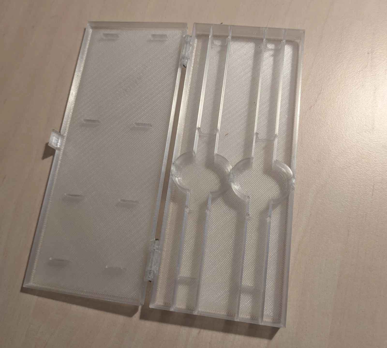 Hộp bao gồm hai phần. Chúng cần được kết nối với các mảnh clip giấy. Latch giữ nắp tốt.