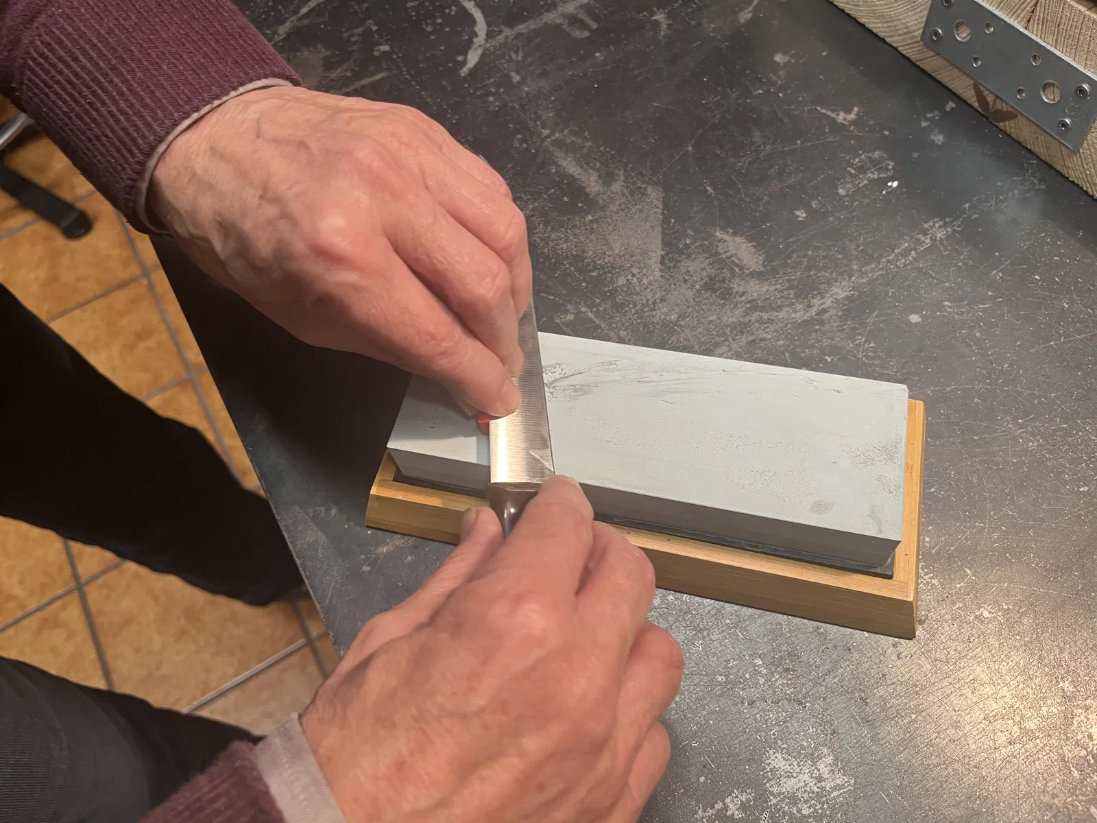 Đây là một cái nêm đơn giản giúp bạn mài dao trên đá mài (whetstone) đúng chuẩn góc 20°.