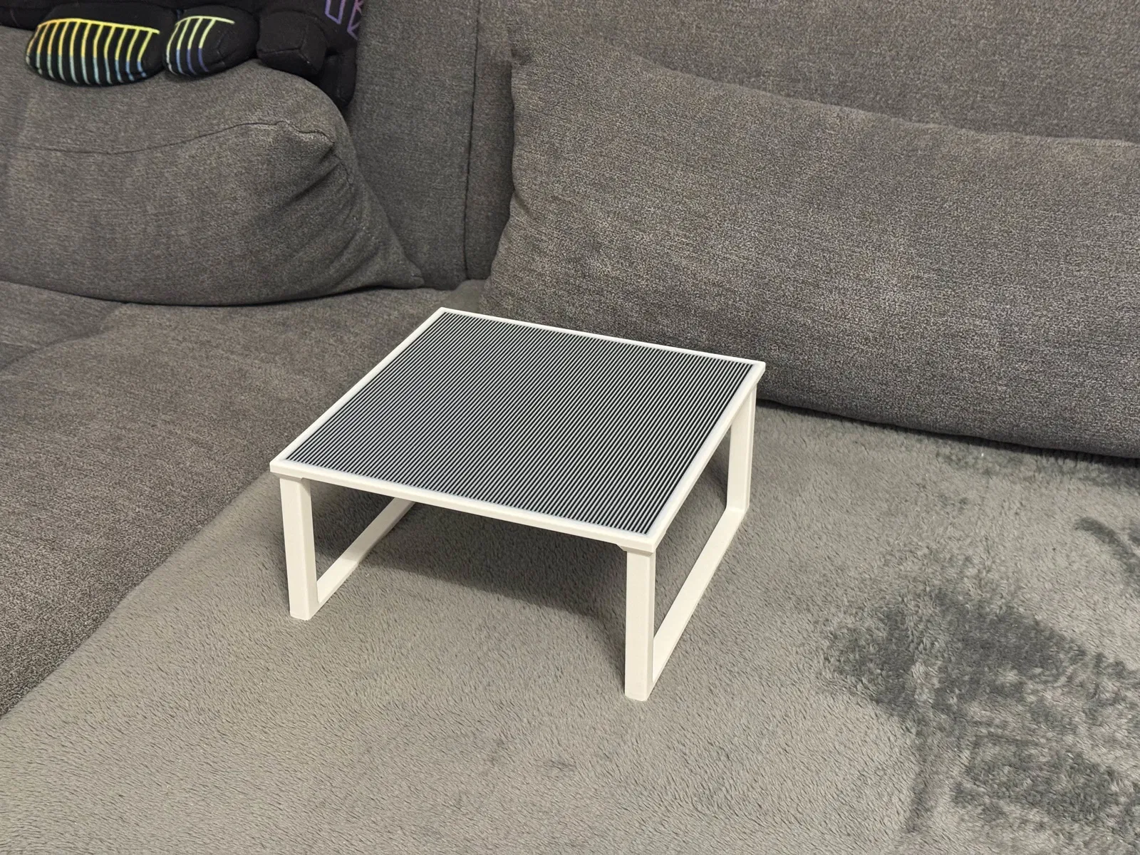 Bàn kê cạnh sofa nhỏ gọn để đặt ly cà phê/trà hoặc vật dụng nhỏ, thiết kế đế thấp giúp ổn định và hạn chế lật. In 2–3 phần (2 chân + mặt bàn), dán keo lắp ráp; dùng PLA, khuyến nghị PETG nếu hay đặt đồ nóng.