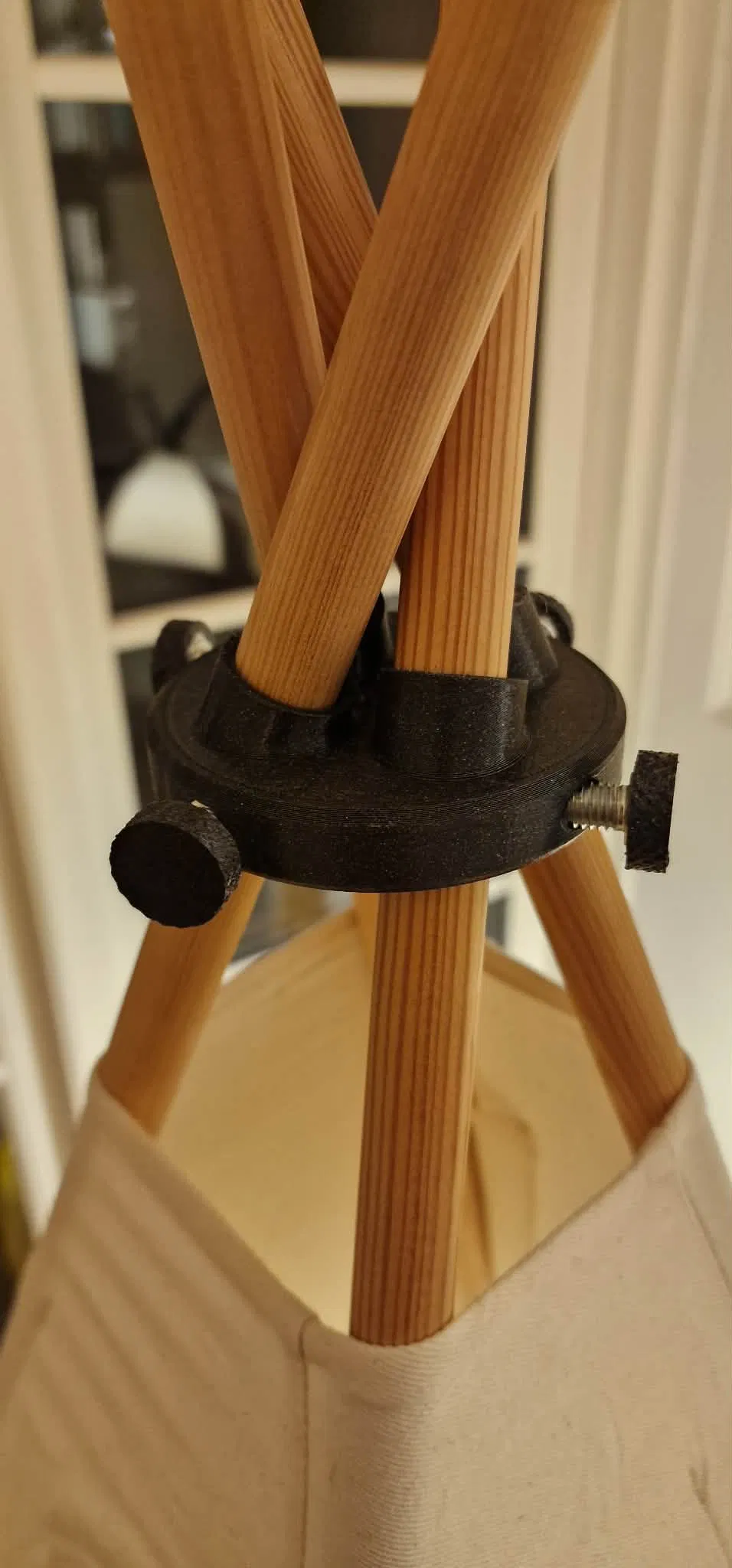 Cháu trai nhỏ của mình được tặng một cái lều teepee tí hon dịp Giáng Sinh. Dễ thương thì có dễ thương, nhưng lúc dựng lên phải cần hai người: một người giữ và cột mấy cây tent pole lại với nhau, trong khi vẫn phải giữ tấm tarp cho khỏi sập. Làm vậy hơi bất tiện. Vì vậy mình thiết kế cái bracket này để việc lắp dựng lều dễ hơn nhiều.