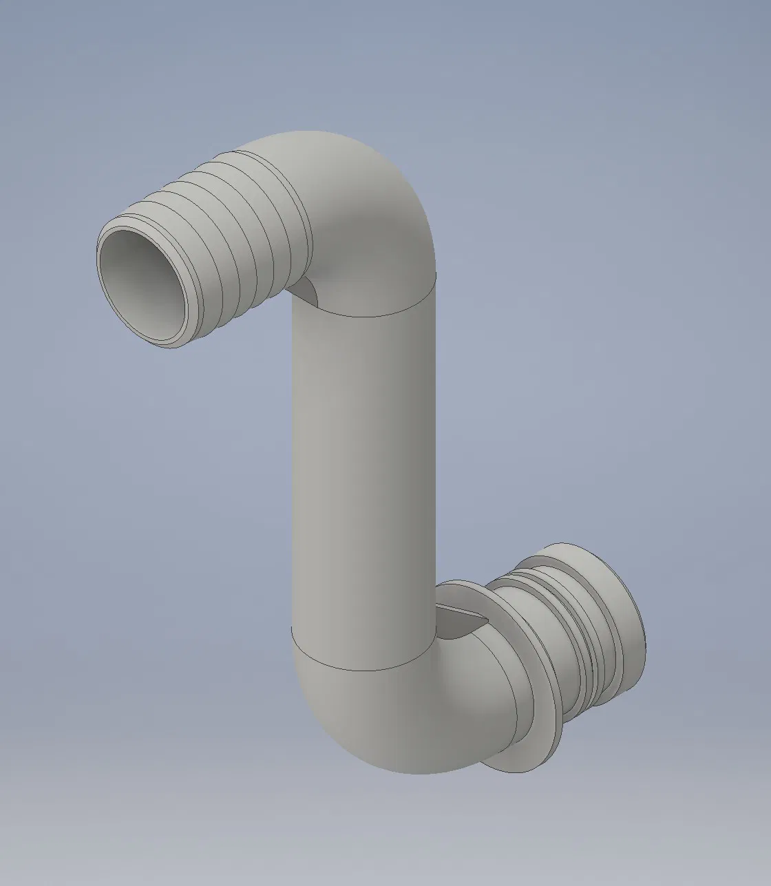 Mẫu chi tiết thay thế cho phần ống của bơm chìm Karcher. Khuyến nghị in PETG với 100% infill để kín nước; để tăng độ cứng, nên đặt mẫu in nghiêng dưới 45°.