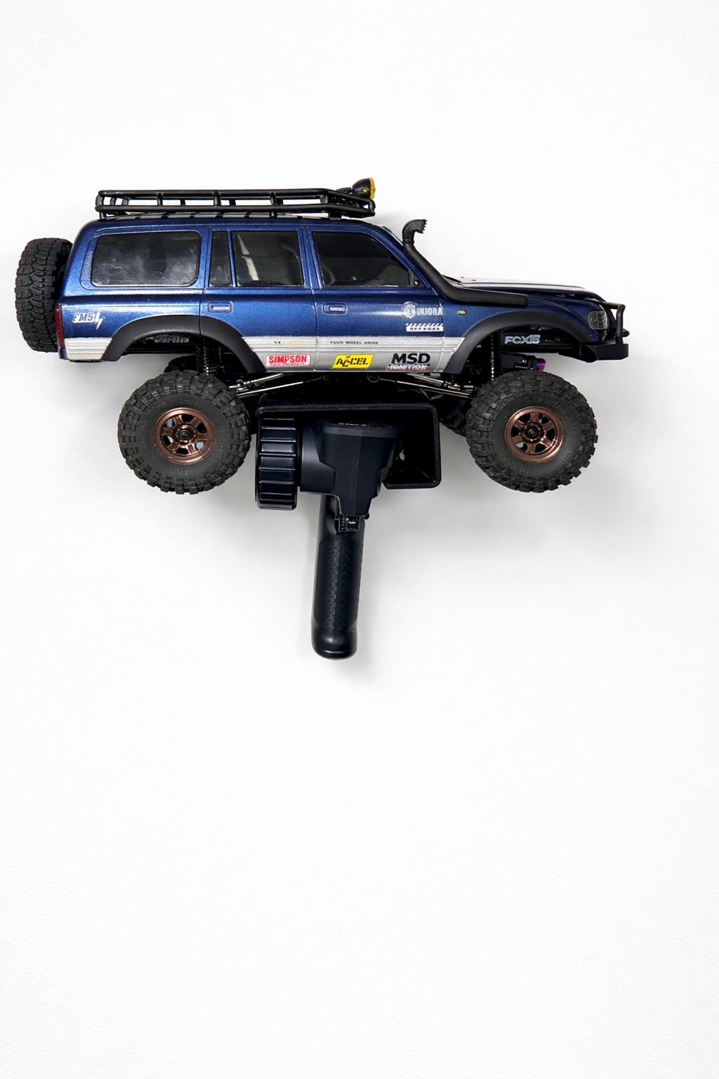 Giữ phòng hobby gọn gàng với giá treo tường cho FMS FCX18/FCX24 LC80. Treo crawler và transmitter lên tường như trưng bày chiến tích. Tương thích transmitter V3 và V5.