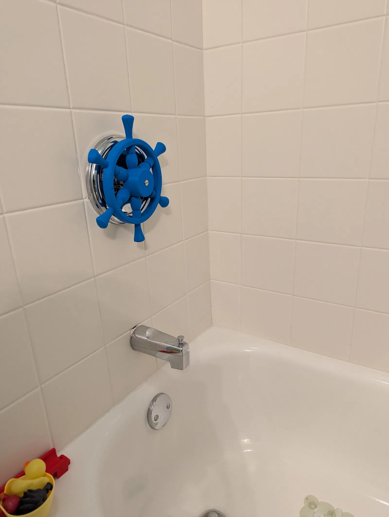 Đây là tay vặn thay thế cho vòi bồn tắm Moen, thiết kế nhìn giống bánh lái tàu cướp biển. Rất hợp cho phòng tắm của mấy bé nhỏ.