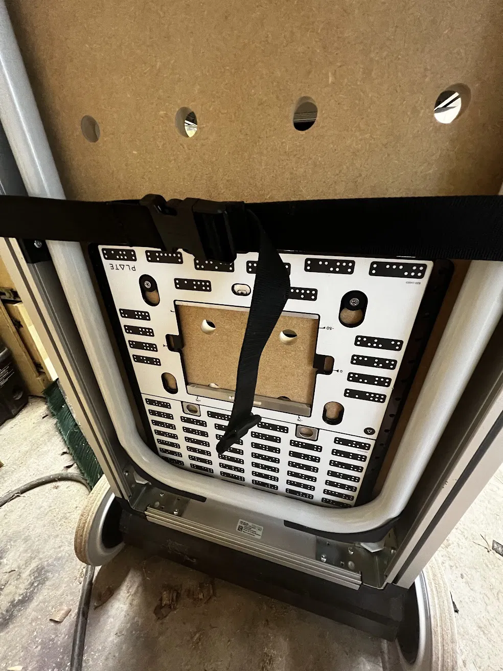 In 2–4 cái để treo Shaper Plate lên tường. Mình đang dùng chung với Festool MW-1000 để gắn Plate ở mặt sau của extension wing khi gập lại và cất. Mình không khuyến nghị cất ở vị trí này trong lúc đang dùng extension wing vì nó che một số lỗ MFT, lỡ khoan xuyên qua Plate thì không hay.
