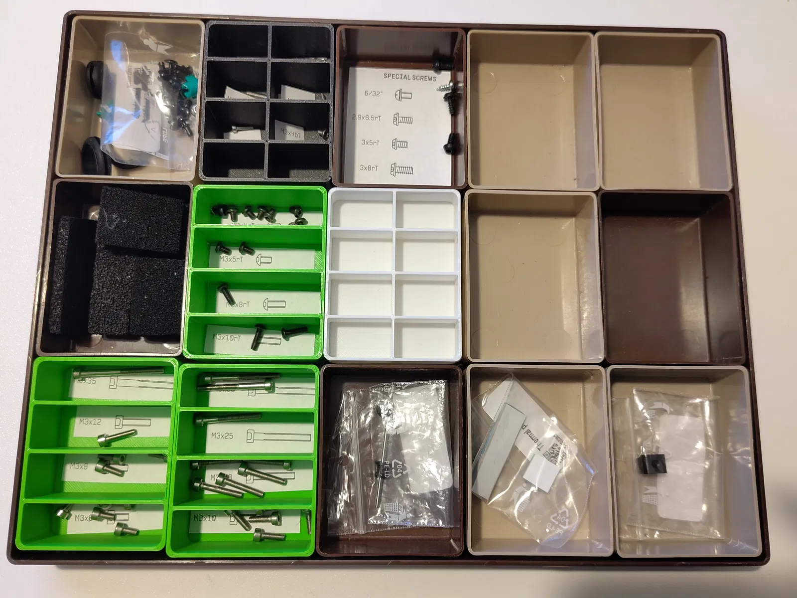 Bộ gồm 6 hộp Sortimen có vách ngăn, kích thước 75mm x 57.5mm x 28.5mm, dùng để thay thế cho các hộp trong bộ sưu tập hiện có, giúp sắp xếp phụ kiện/linh kiện gọn gàng hơn.