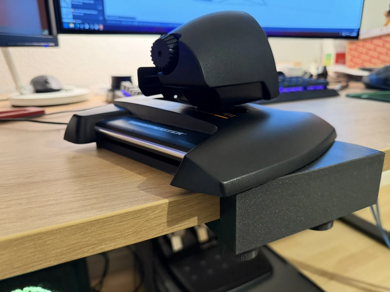 Một cái đế cho Thrustmaster TWCS Throttle để gắn cố định lên bàn theo góc 20°. Cái đế này dùng được cho bàn có độ dày từ 8mm đến 35mm.