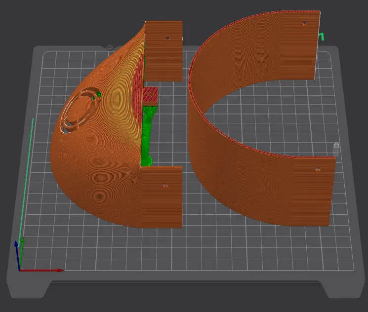 Nắp vỏ được cắt và chia thành 2 miếng để rút ngắn thời gian in và giảm lượng support cần dùng khi in 3D. Phù hợp cho các bản in như simracing wheel, dễ in hơn và tiết kiệm vật liệu.