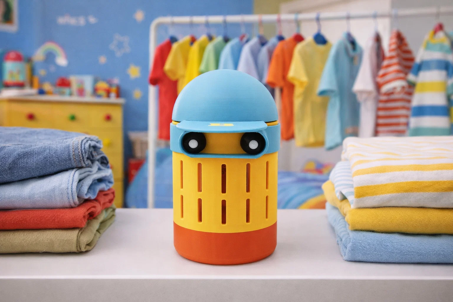 Tải Bobby và biến mùi hương hằng ngày thành một nhân vật vui nhộn, tùy biến theo ý thích cho phòng, closet và wardrobe. Có ngăn kín khí, thay nón/phụ kiện bằng nam châm 10×2 mm, dễ refill và in 3D.