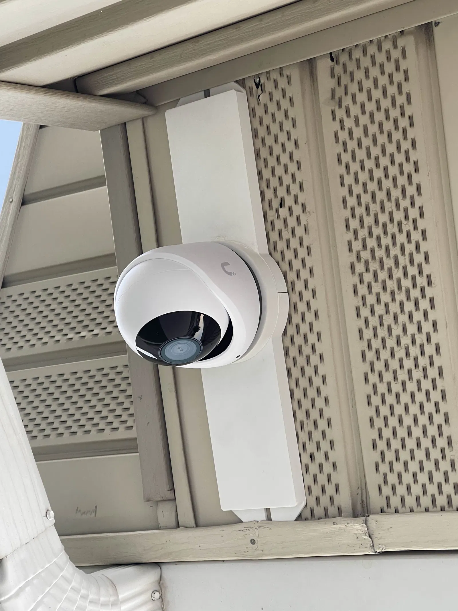 Mình không muốn phải khoét một lỗ bự trên soffit chỉ để gắn cái đầu connector lớn của camera turret. Cái mount này giúp cố định chắc chắn camera Ubiquiti G6 Turret lên soffit, cho bạn một lựa chọn lắp đặt tránh phải khoan/khoét lỗ lớn, giữ soffit nguyên vẹn và giảm tối đa nguy cơ làm hư hại.