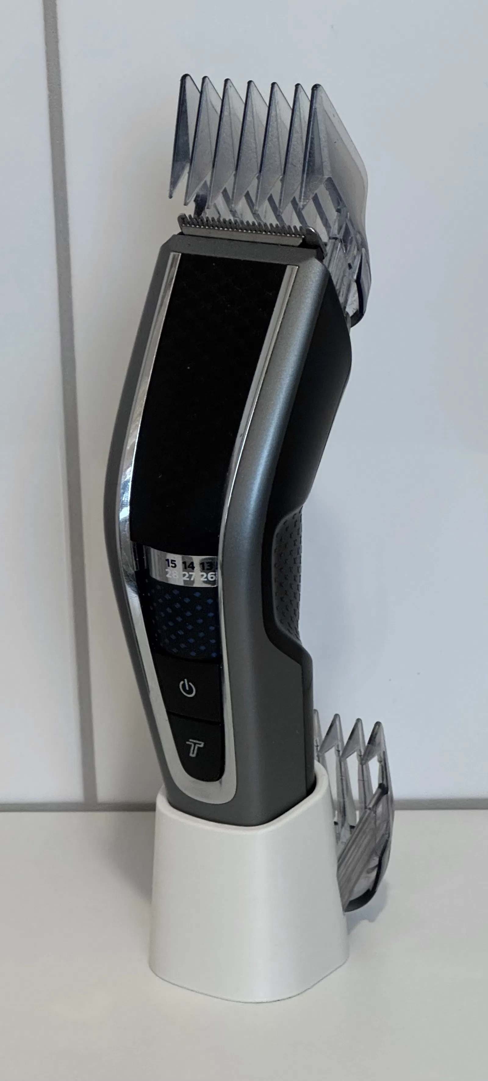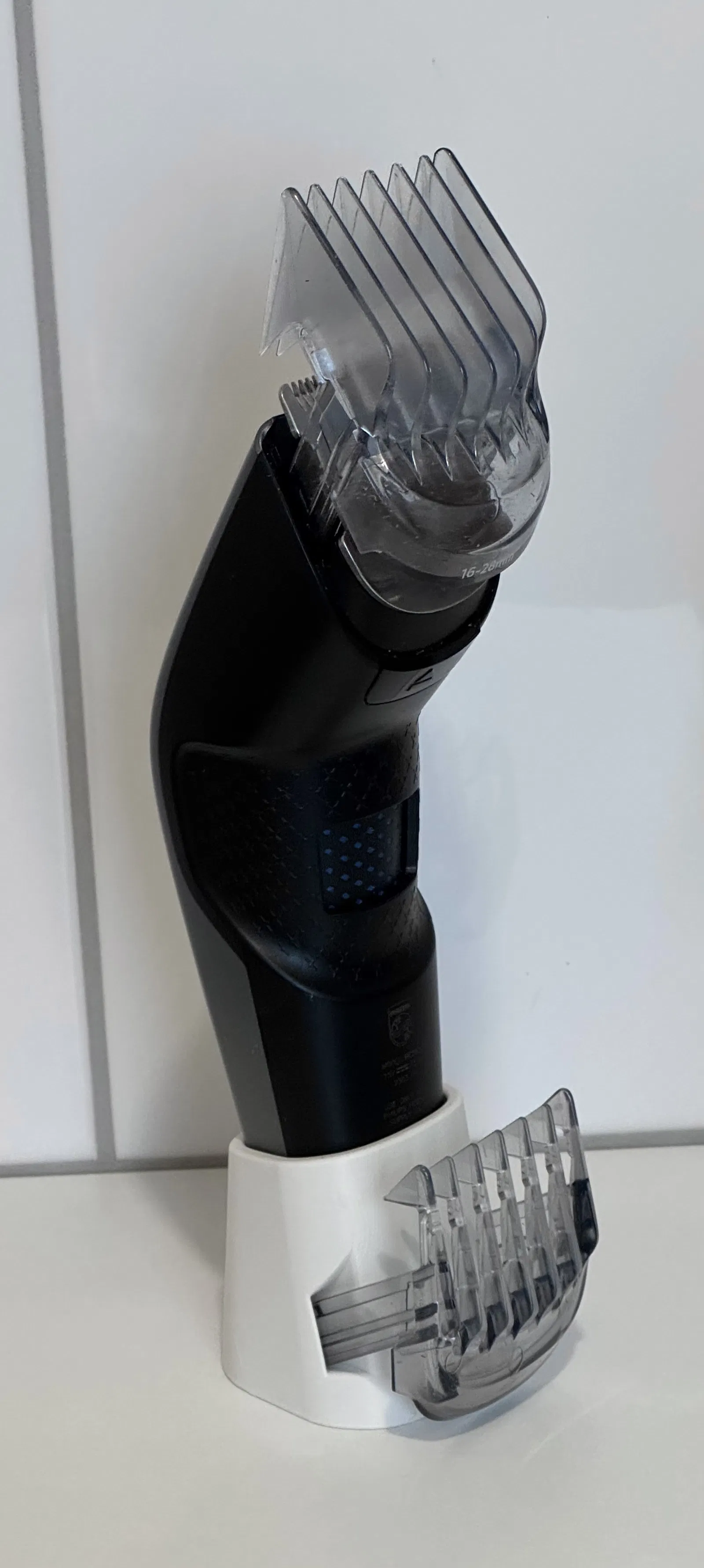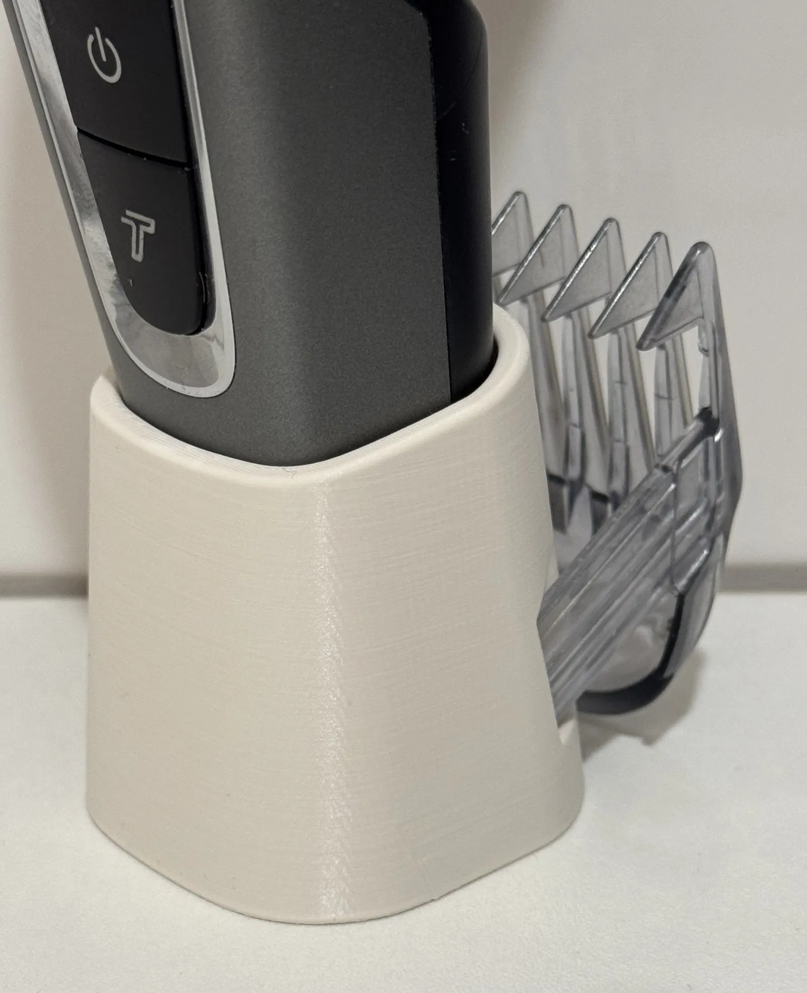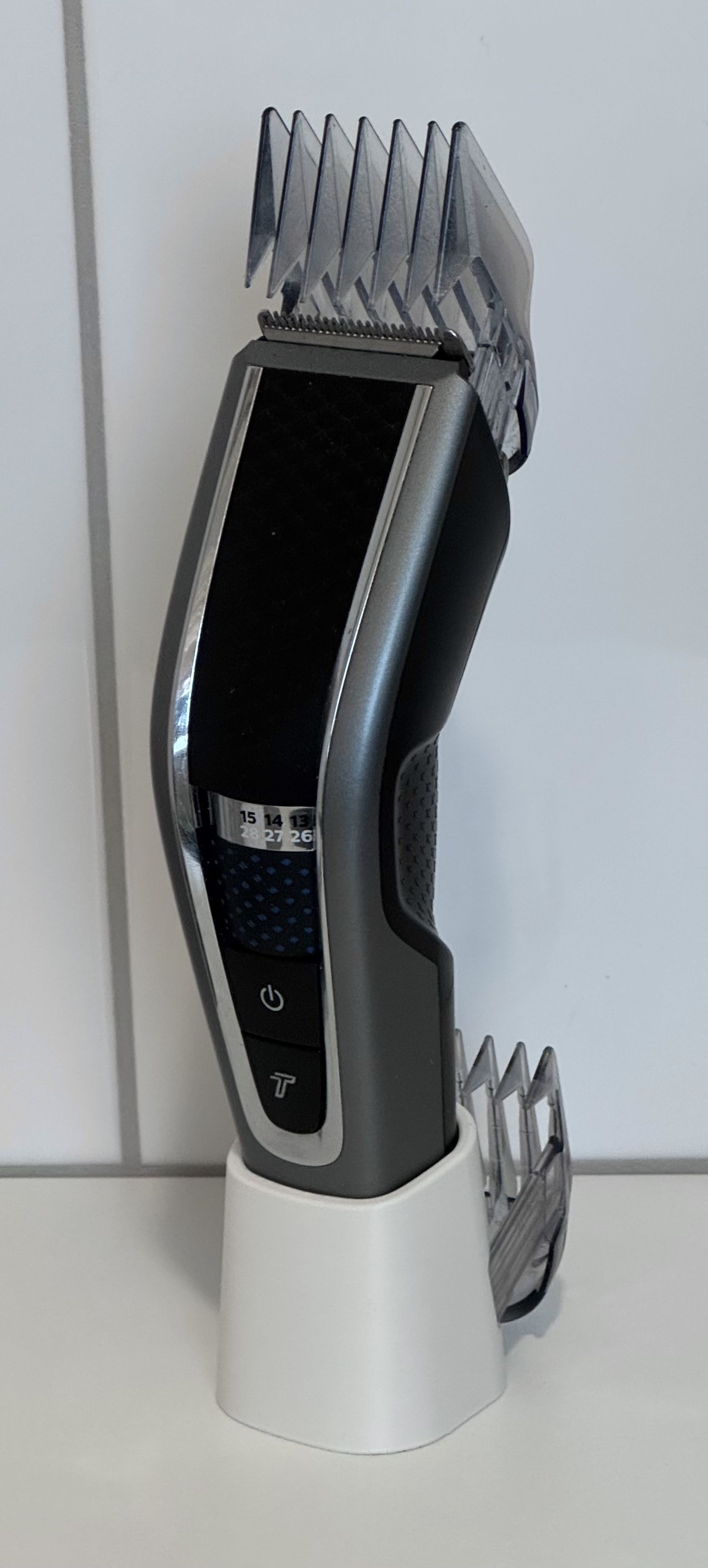 Chân đế cho Philips Hairclipper series 5000 & 7000. Có khe phía sau để gắn/lưu comb attachment chưa dùng. In không cần support.