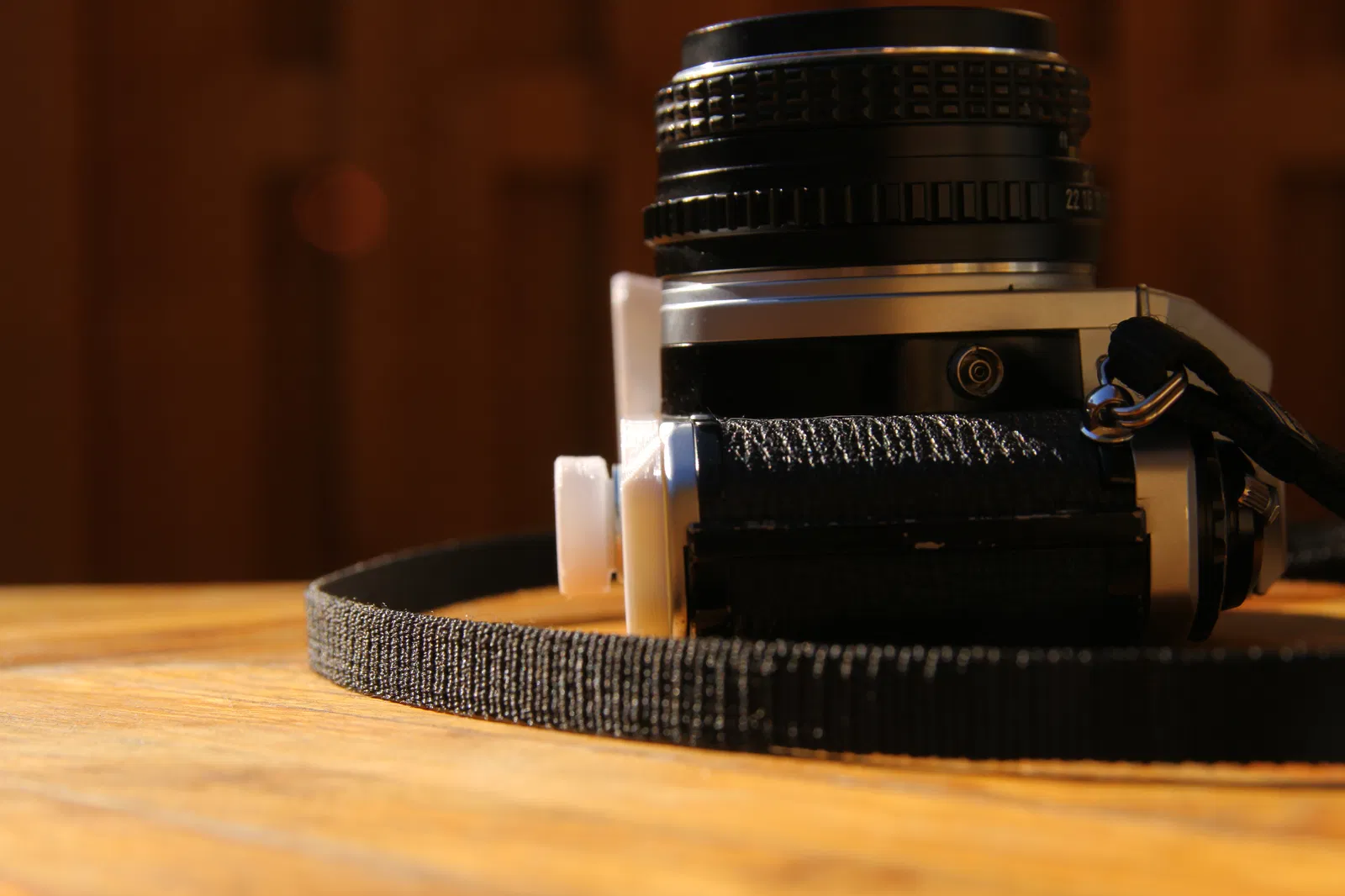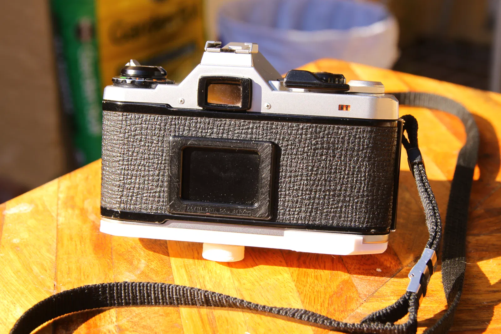 Cái grip này không bị vướng cửa nạp phim, nút clutch, cần hẹn giờ (ít nhất trên ME và ME Super, mấy dòng khác thì mình chưa chắc — bạn nào có thì cho mình biết nha), các điểm gắn dây đeo zin và cái vòng hình thang (trapezoidal ring). Mấy loại vòng tròn thì mình không rõ, nhưng chắc vẫn dư chỗ cho đa số.
