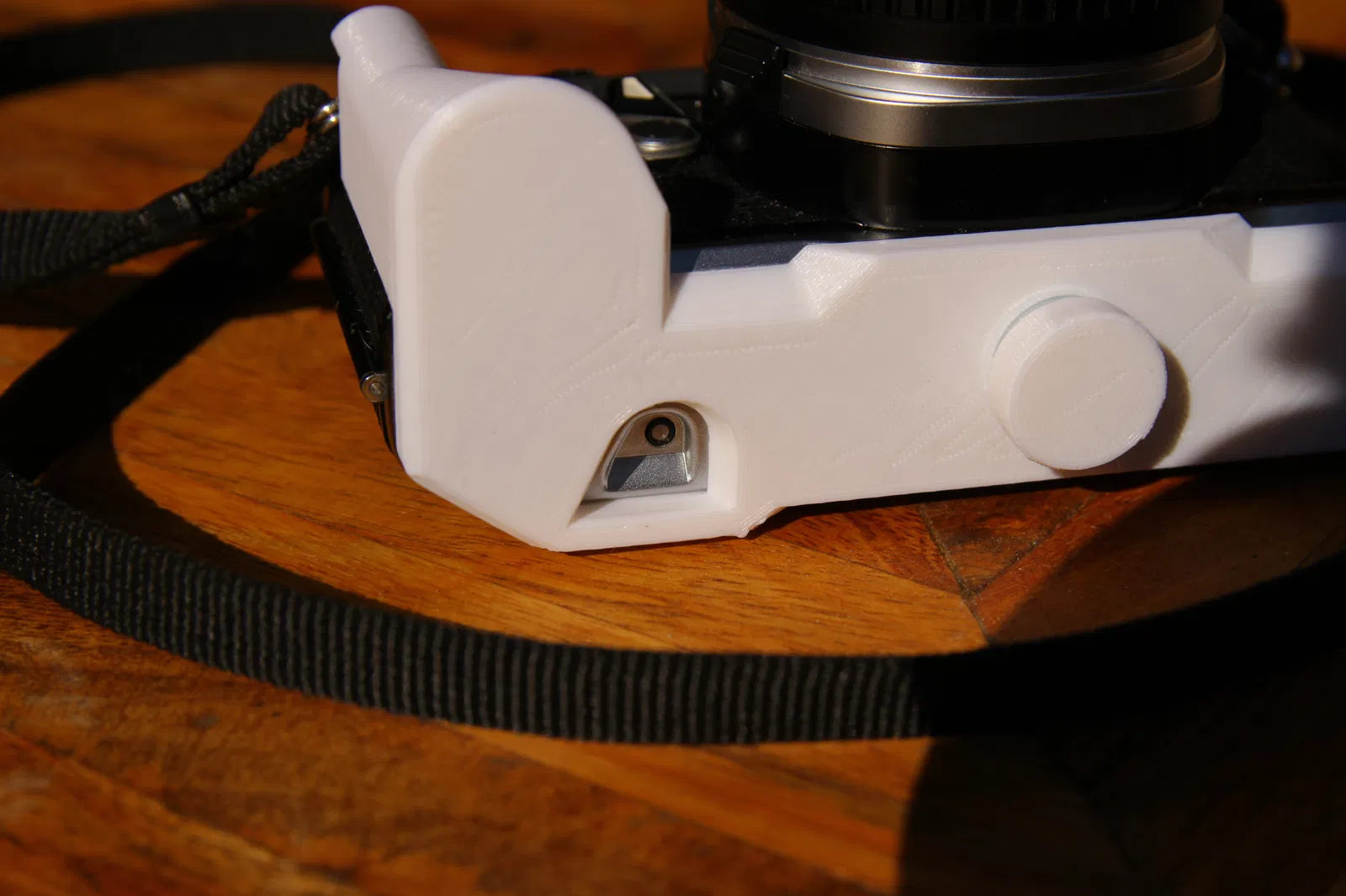 Mình đơn giản là muốn con ME Super cầm cho thoải mái hơn một chút mà không phải tốn cả đống tiền (kiểu gì chơi nhiếp ảnh cũng hay bị vậy). Thế là mình làm đúng cái mà ai cũng làm: dành vài tiếng tiếp theo để thiết kế, in và test cái thiết kế này để đảm bảo nó fit chuẩn, nhìn ổn, và thật sự là cầm thoải mái (ít nhất là với mình và những ai tay nhỏ).