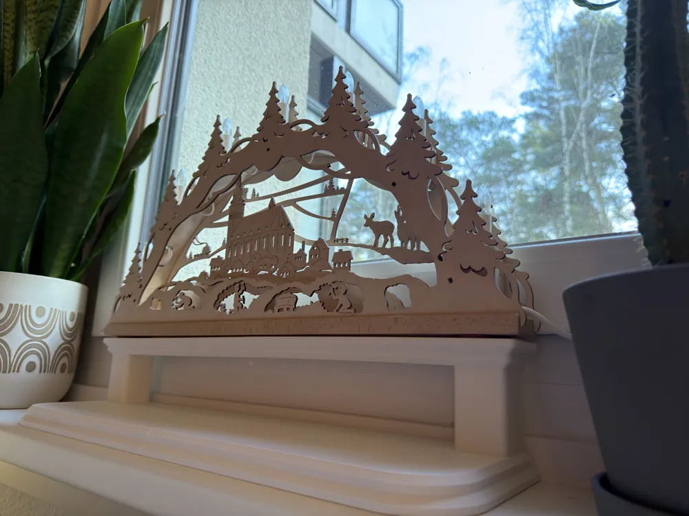 Mùa Giáng Sinh sắp tới rồi, chắc giờ đèn cũng đang sáng rực trong hầu hết các khung cửa sổ. Tiếc là cái của mình đặt cao quá nên cái Schwibbogen gần như không ai thấy được. Nên mình làm ra vài lựa chọn để kê/trưng Schwibbogen của bạn lên cho ai cũng nhìn rõ.