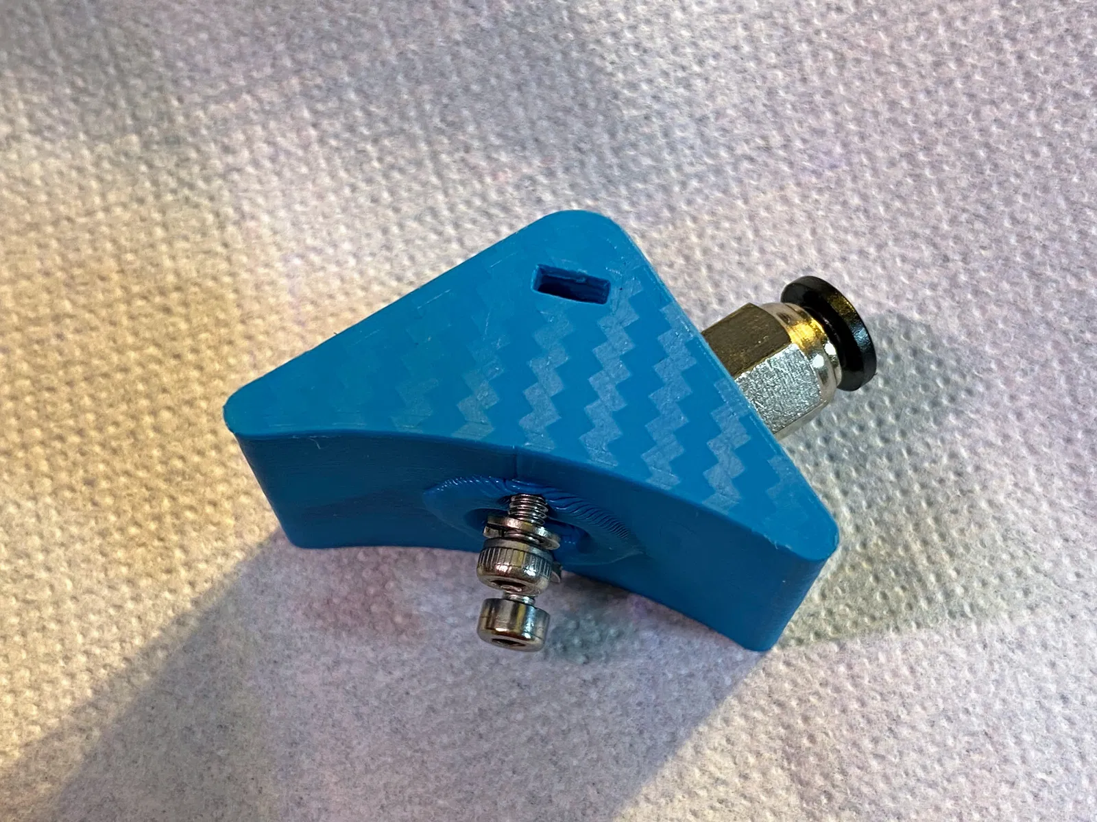 - vặn adapter M6 cho ống PTFE vào chi tiết đã in, thường sẽ vừa khít
