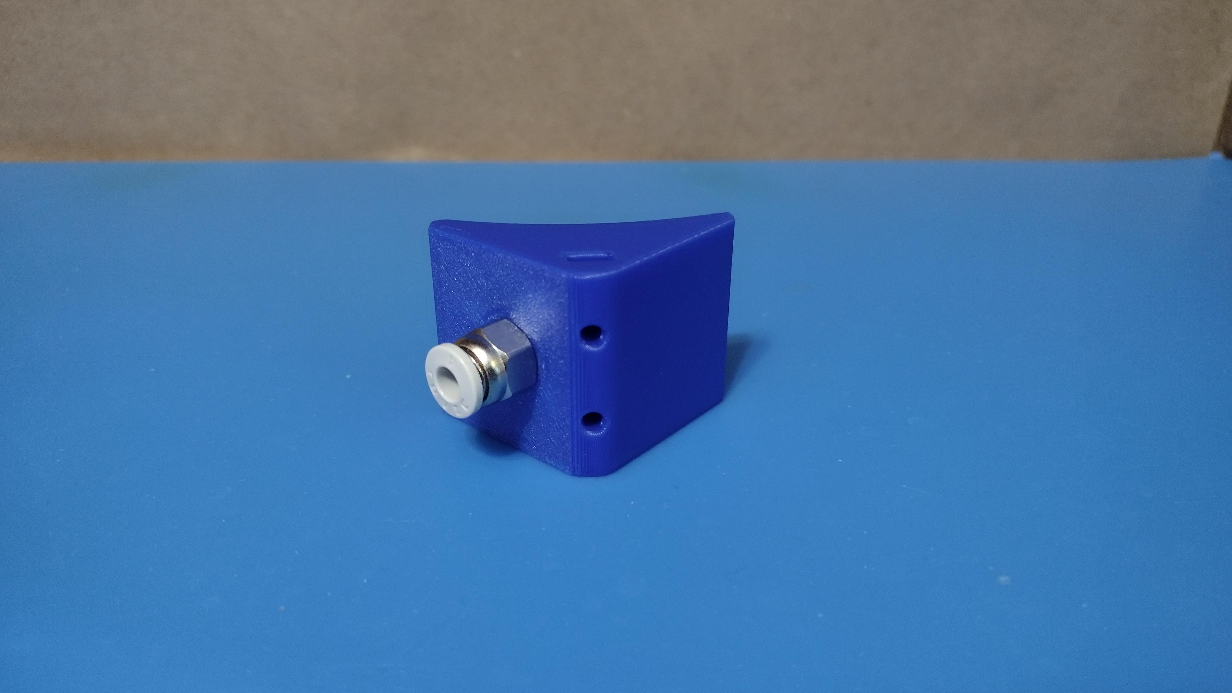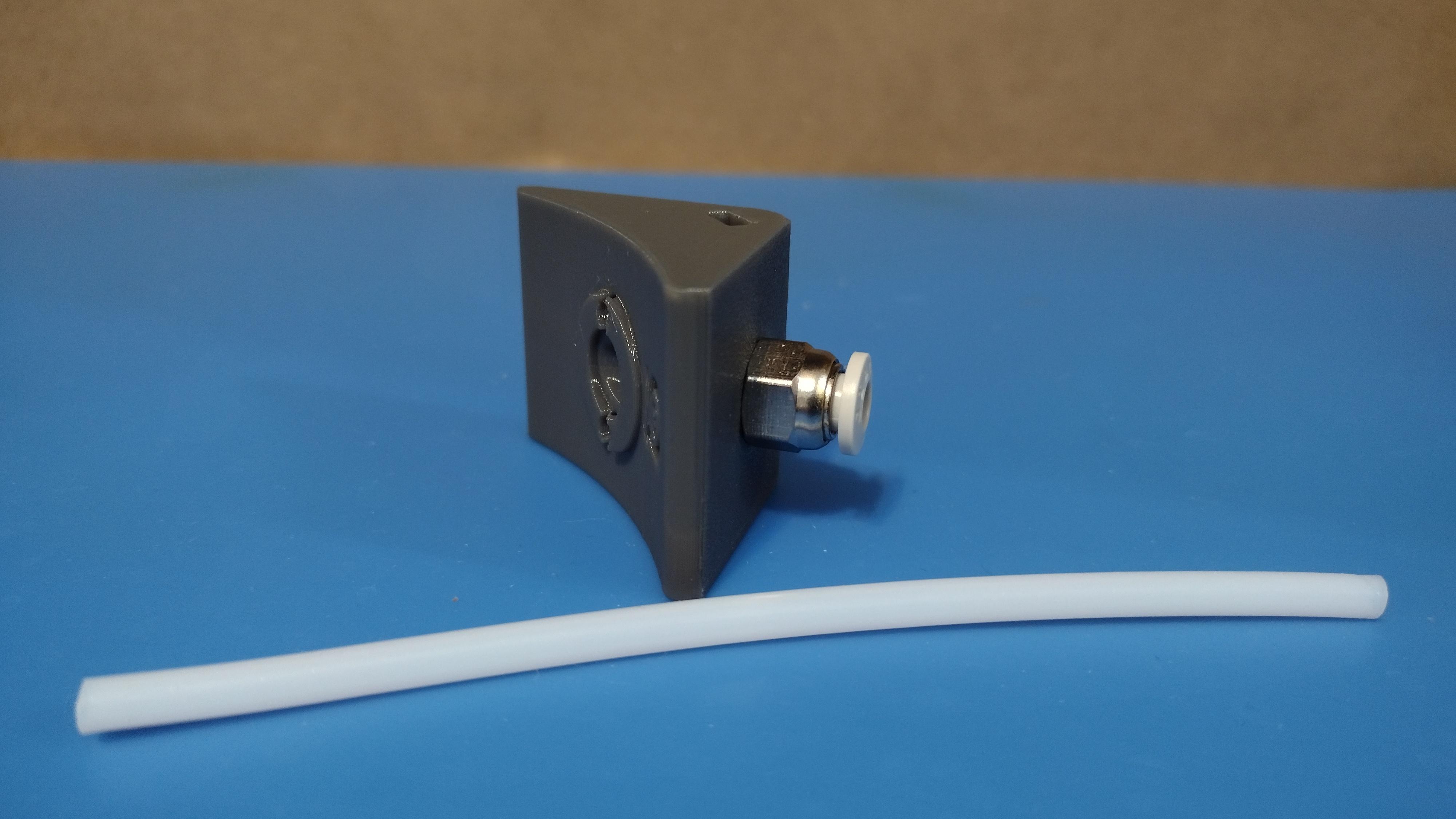 Vặn adapter PC4-M10 cho ống PTFE vào phần đã in. Adapter của mình vặn được khoảng nửa đường thì bắt đầu cần dùng cờ-lê siết thêm vài vòng. Mình ăn được khoảng 2–4 vòng ren. Dù không bắt buộc, bạn có thể dùng taro M10 x 1.0 để tạo ren. Mình thấy không cần thiết.