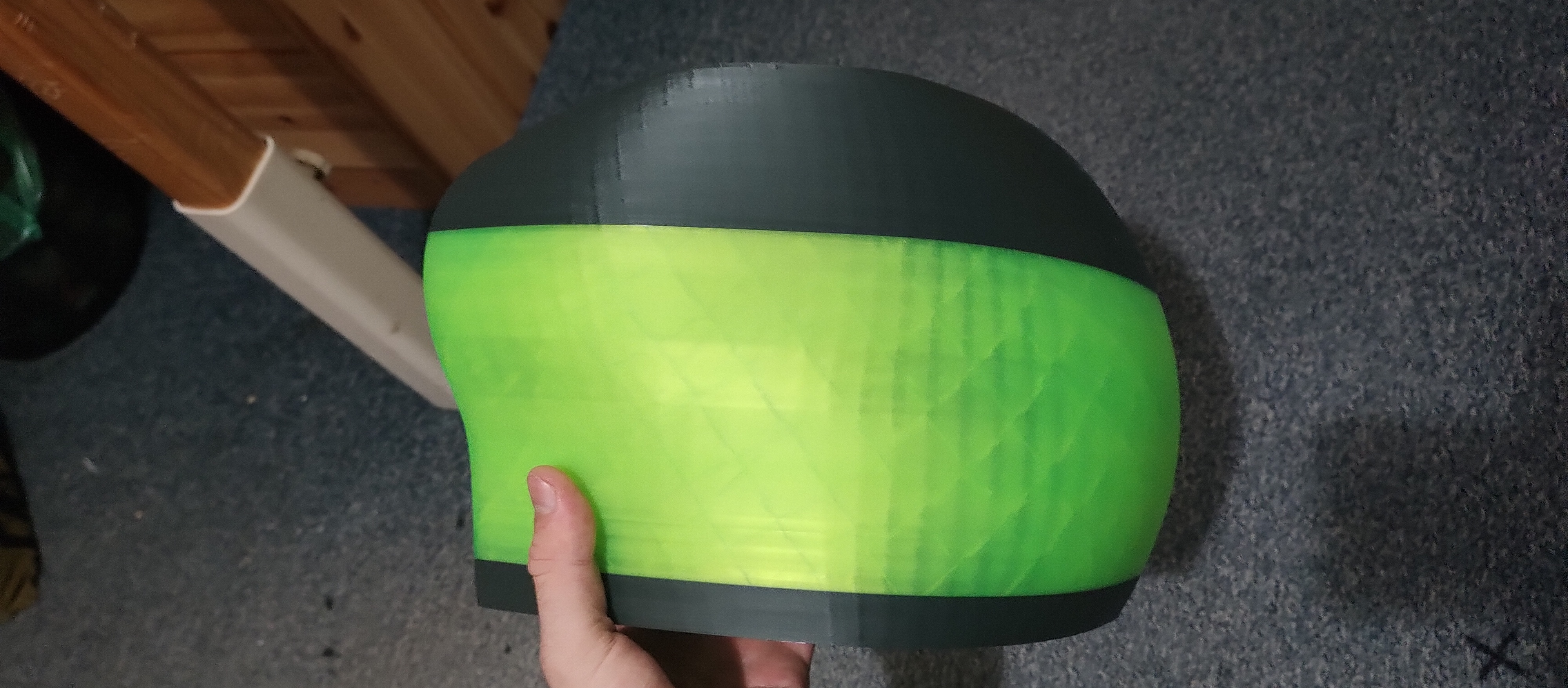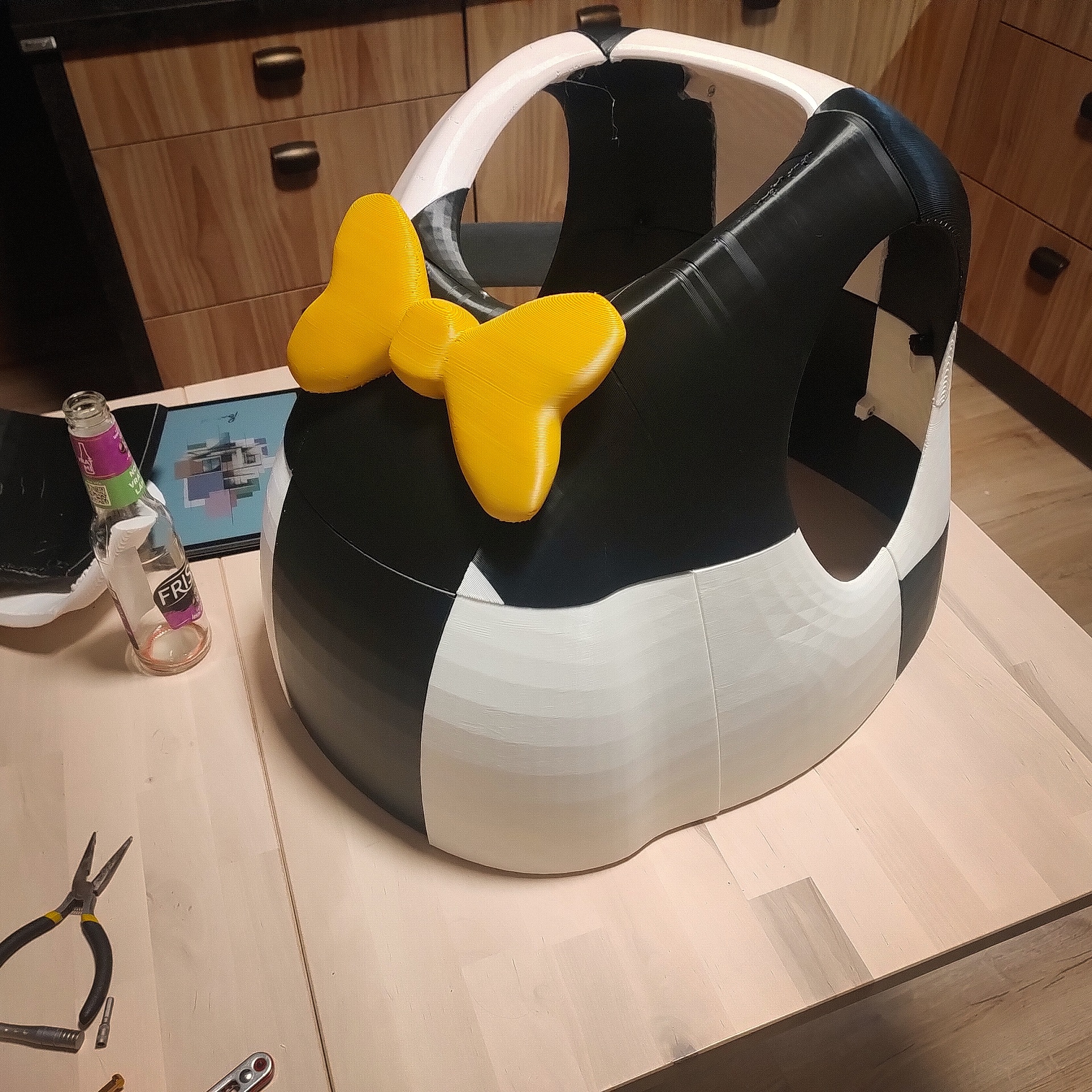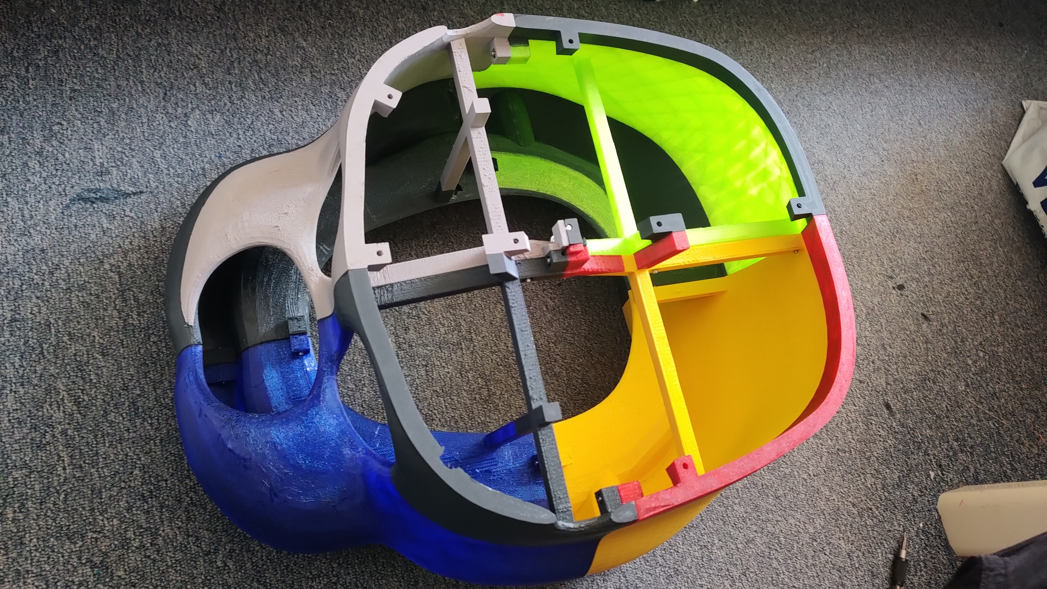 Phần gắn head mask lên đầu mình KHÔNG được giải quyết bằng bản in, mà mình phải nhét thêm foam với dây để cố định lên đầu. Tay chân cũng vậy, mình nhét foam linh tinh vào và cuối cùng cũng tạm ổn.