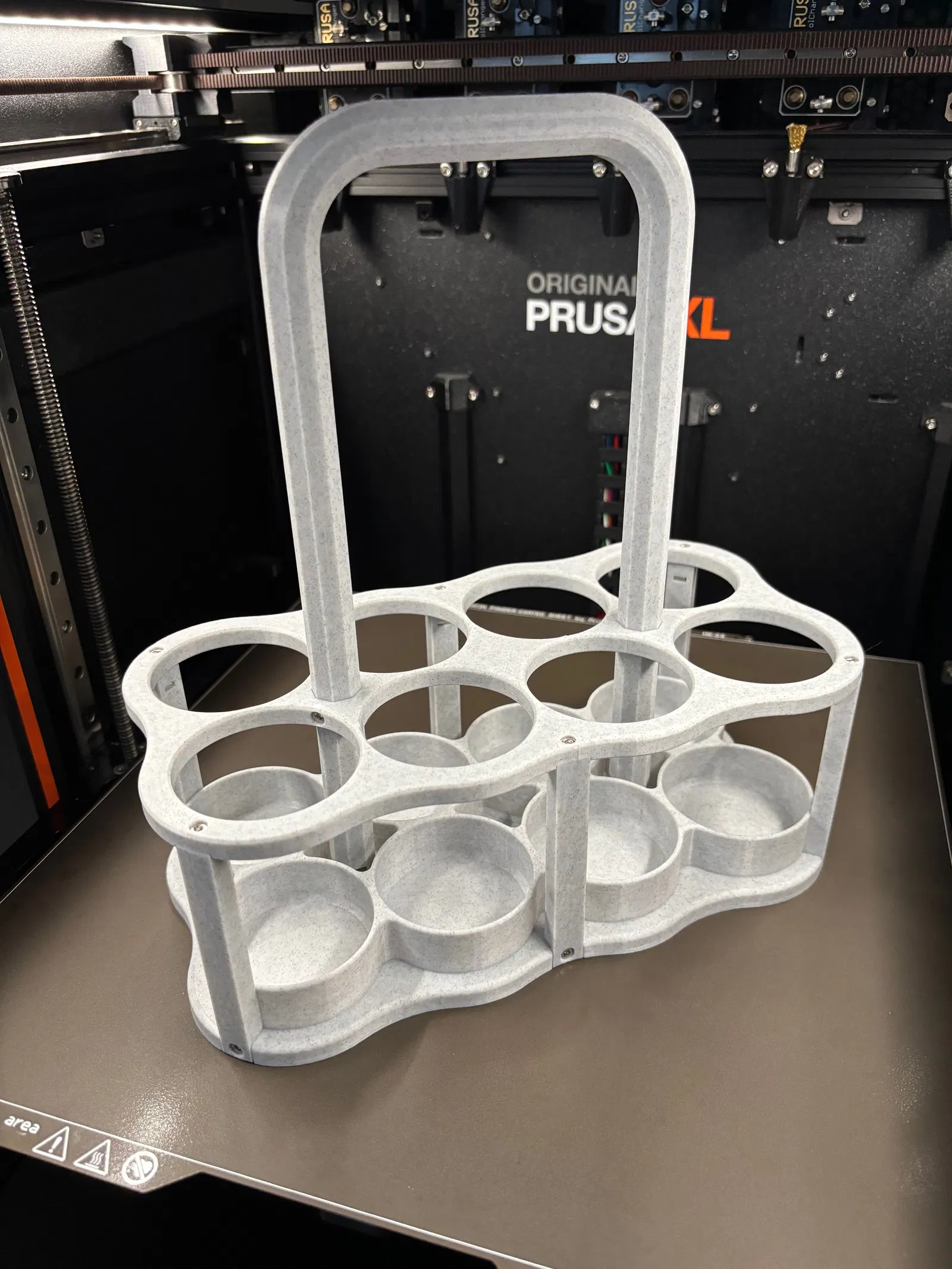 Bottle Caddy để xách và sắp xếp 8 bình Dr. Brown’s, dùng được cho bình 8oz lẫn 4oz. In không cần support, khuyến nghị tối thiểu 3 perimeters; tay đỡ nên đặt nằm trên cạnh phẳng dài khi in.