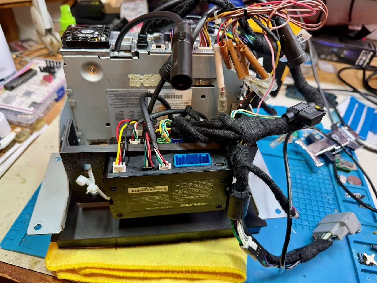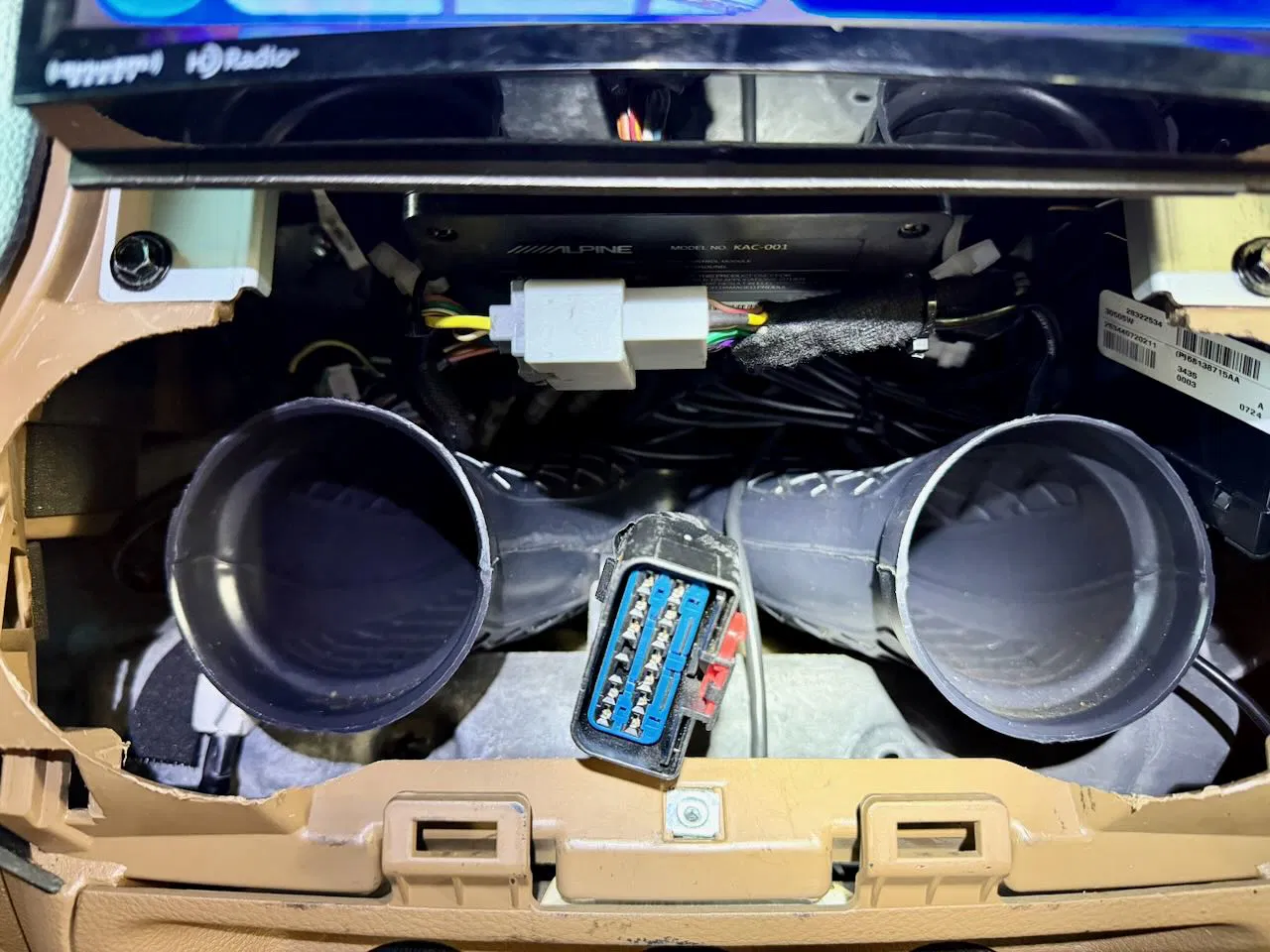 Trong trường hợp của mình, mình gắn bộ iDatalink Maestro và bộ điều khiển phụ kiện rời Alpine KAC-001 lên bracket. Mình để module camera Alpine và module SiriusXM tách riêng vì cả hai đều đã được lắp gọn, nằm xa khu vực đầu head unit chính.