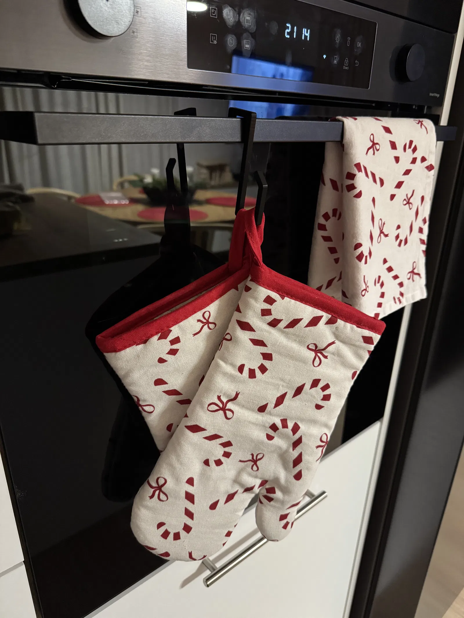 Mẫu móc treo được remix từ bản gốc và chỉnh lại để vừa với lò nướng Samsung hiện đại, bề rộng 1,5 cm. Gắn vào vừa khít, dùng tiện để treo găng tay/lót tay khi nướng.