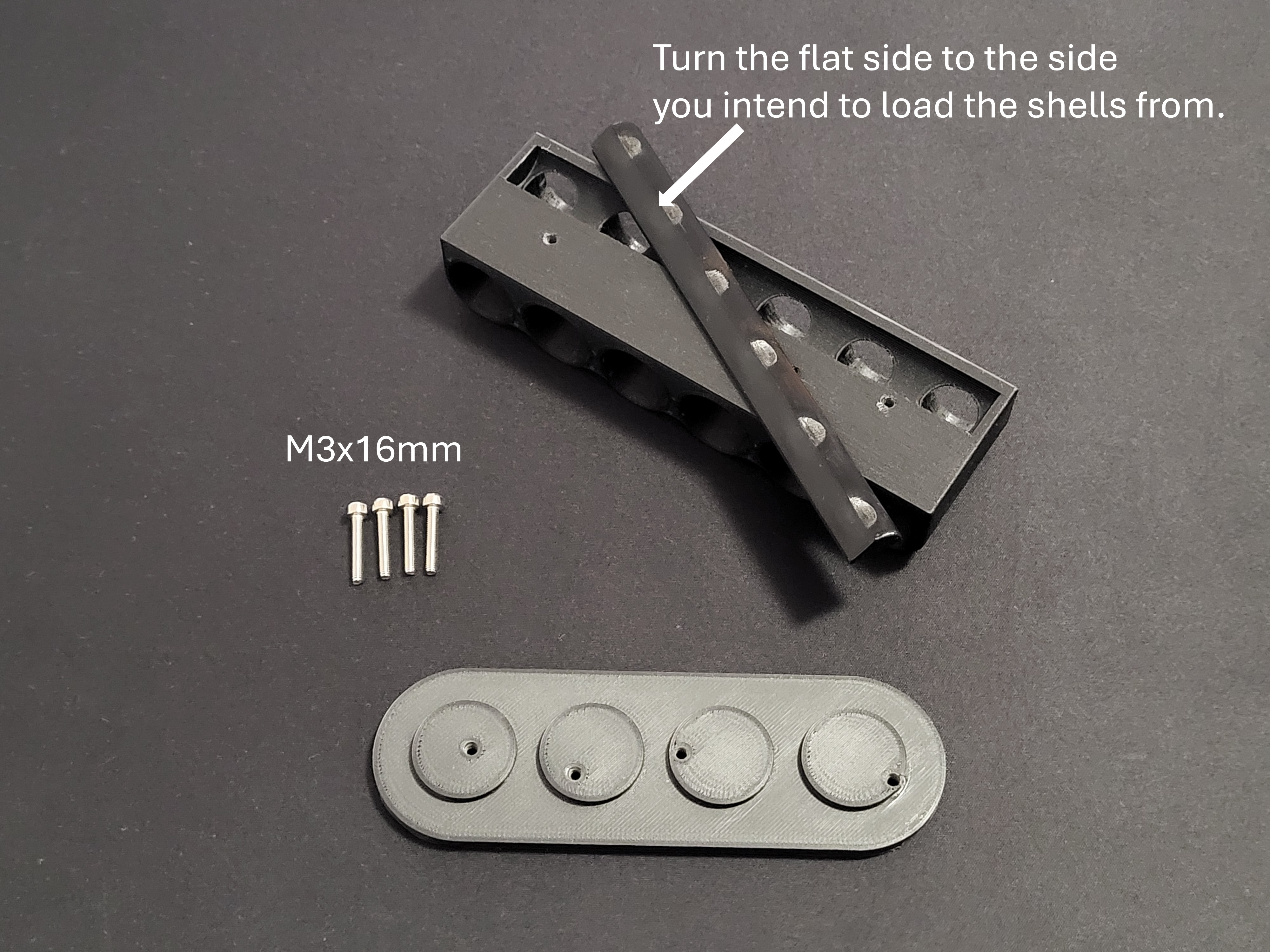 Giá giữ shell cho Maruzen M870/M1100, gắn lên top folding stock và chứa 6 shell. Có miếng TPU chống trượt rớt. Cần thêm 4 ốc M3x16mm Socket Head Bolts; khuyến nghị in PETG/PLA và TPU 95a.