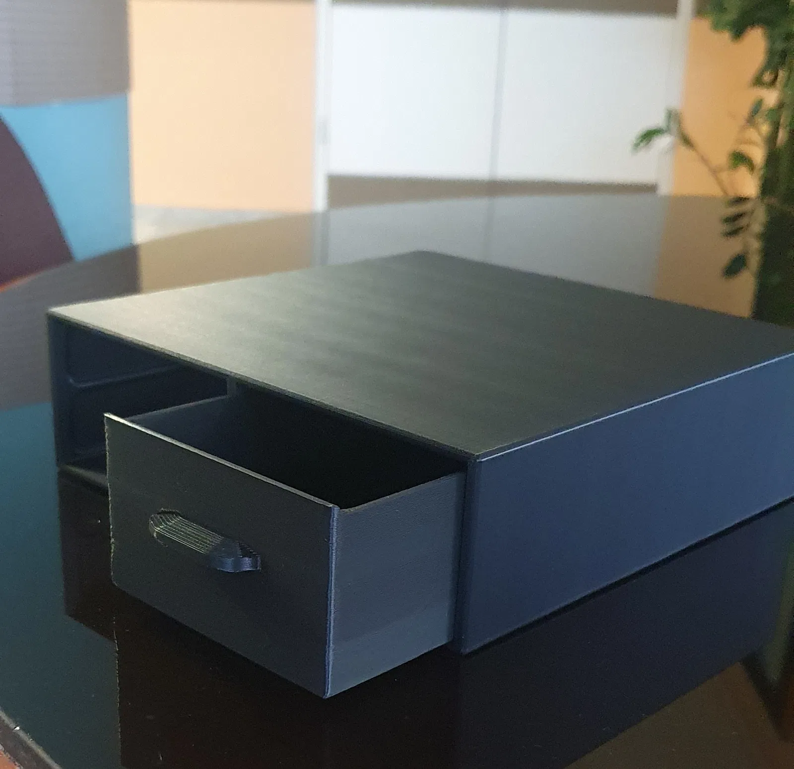 Mình cần thiết kế một cái Monitor Riser Box cho đồng nghiệp. Nên mình thêm 2 ngăn kéo để tận dụng không gian, và ai cũng thấy tiện! Kích thước 20cm x 20cm x cao 6cm. Bạn có thể in bằng PLA, PETG, v.v.; 2 ngăn kéo giống hệt nhau, phần tay cầm cần support. Cứ thoải mái làm theo ý bạn với mẫu này, hoàn toàn miễn phí!