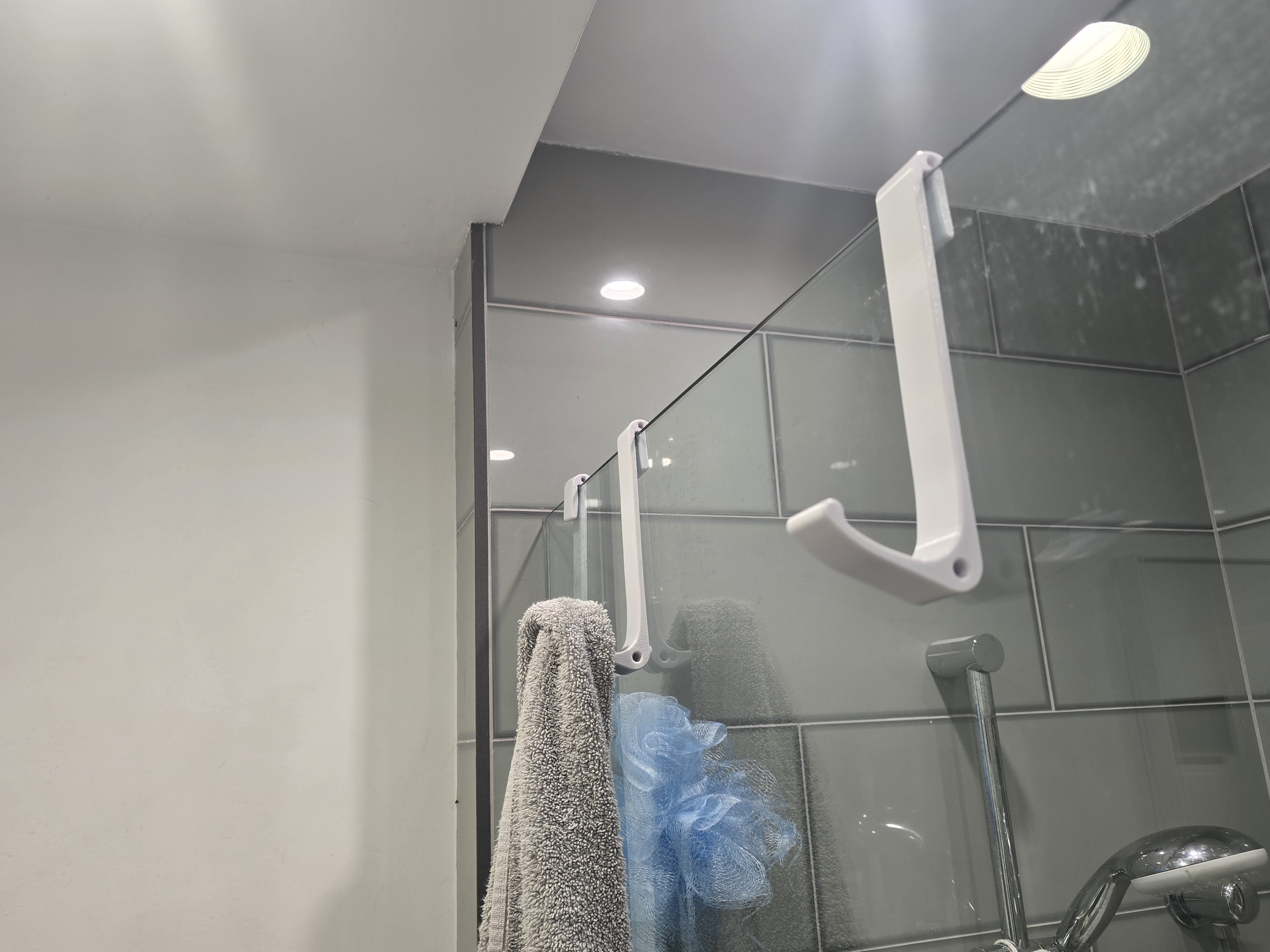Móc treo khăn cho kính phòng tắm (shower glass) với bán kính móc rộng, treo khăn dày dễ hơn. Có 3 bề rộng, khuyến nghị in PETG (3–4 perimeters, infill 20%+). Bản mới thêm móc 200mm và hỗ trợ parametric.