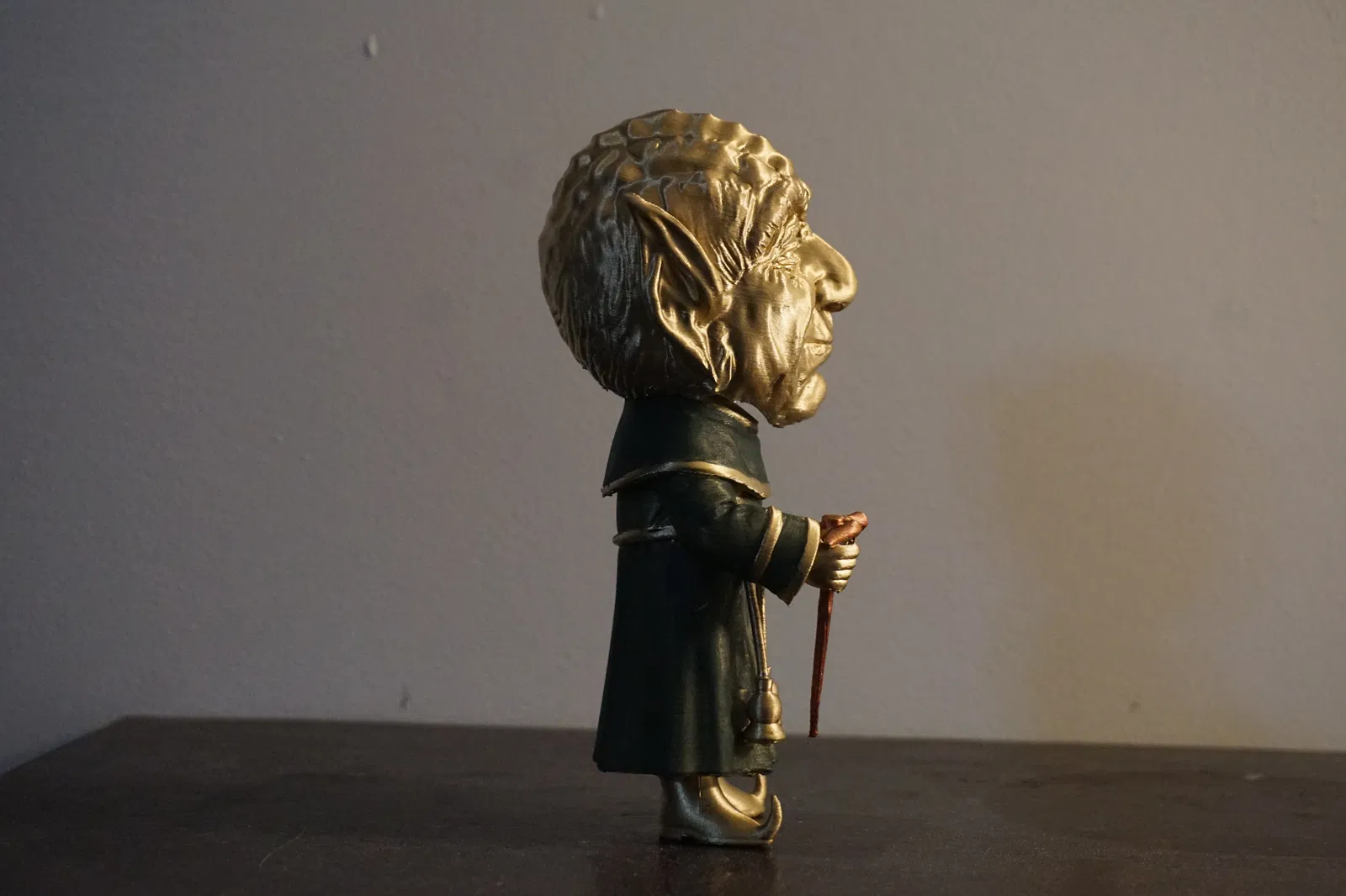Mô hình bobblehead nhân vật Yogurt trong Spaceballs, làm để tri ân Mel Brooks. Có dùng lò xo 7.5mm x 29.8mm; nếu đổi lò xo lớn hơn thì cần scale parts cho vừa. Gợi ý sơn vàng, áo xanh và gậy burgundy.