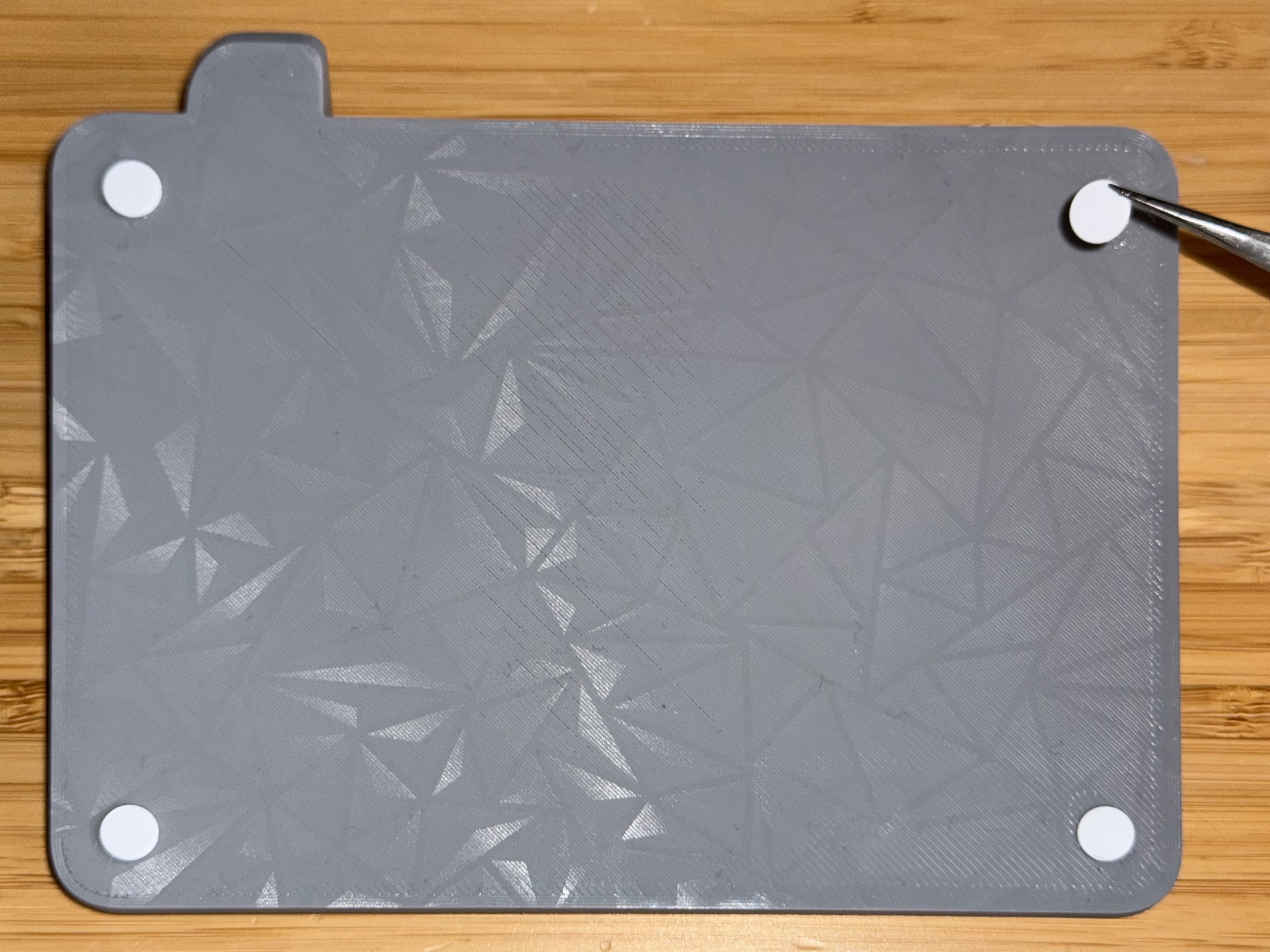 1. Dán các chân cao su vào tenting base. Của mình vẫn còn keo gốc, bám PLA đủ tốt.