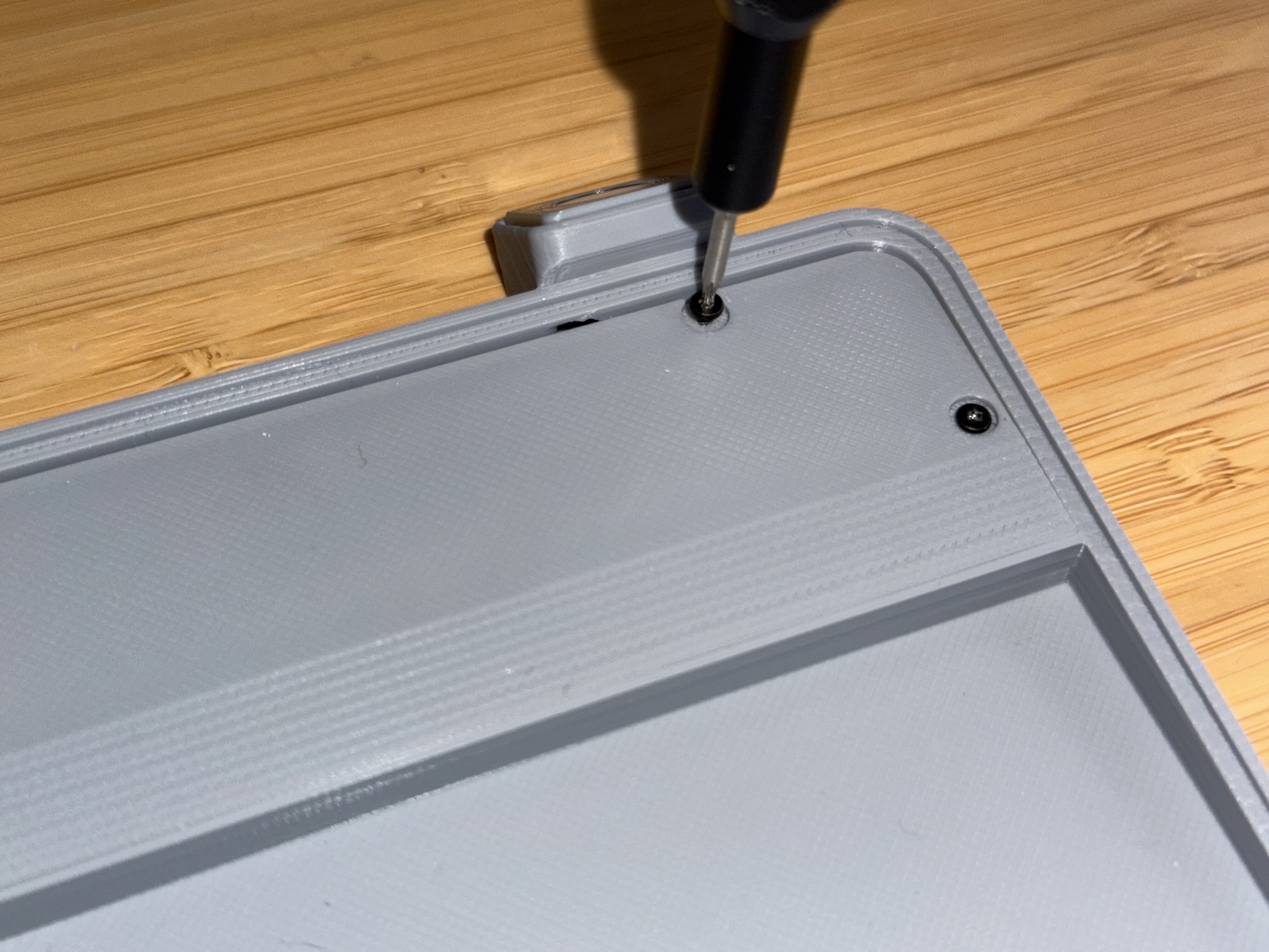 2. Đặt PCB và connector vào đúng vị trí. Dùng ốc zin để cố định PCB. Các ốc này sẽ tự tạo ren (self-tapping) nếu bạn vừa vặn ấn nhẹ khi vặn. Cẩn thận, vì siết quá tay là rất dễ làm toét/banh ren (coi như bỏ ốc).