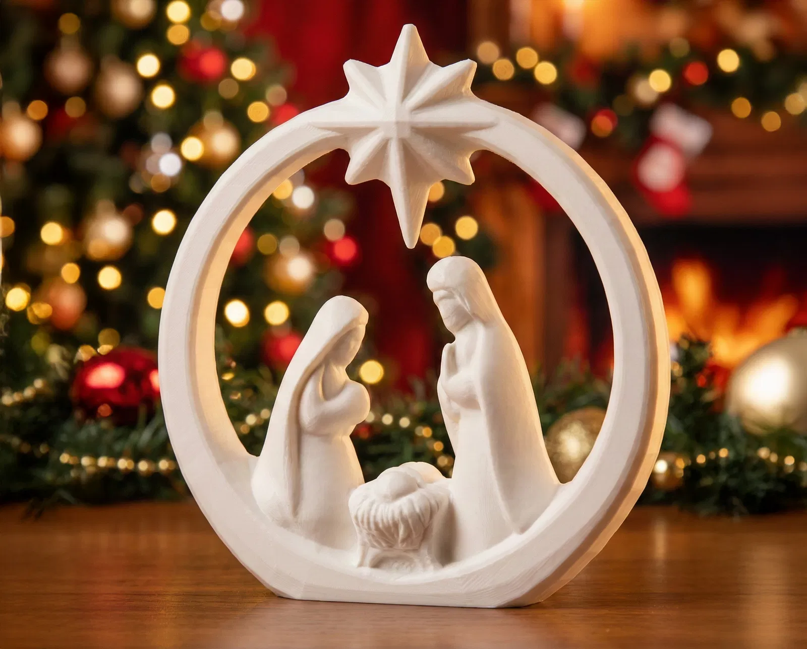 Dù đặt trên kệ lò sưởi, kệ trưng bày hay làm centerpiece, mẫu 3D này lan tỏa tinh thần ngày lễ an yên mà không bị rối mắt như các cảnh truyền thống nhiều chi tiết.