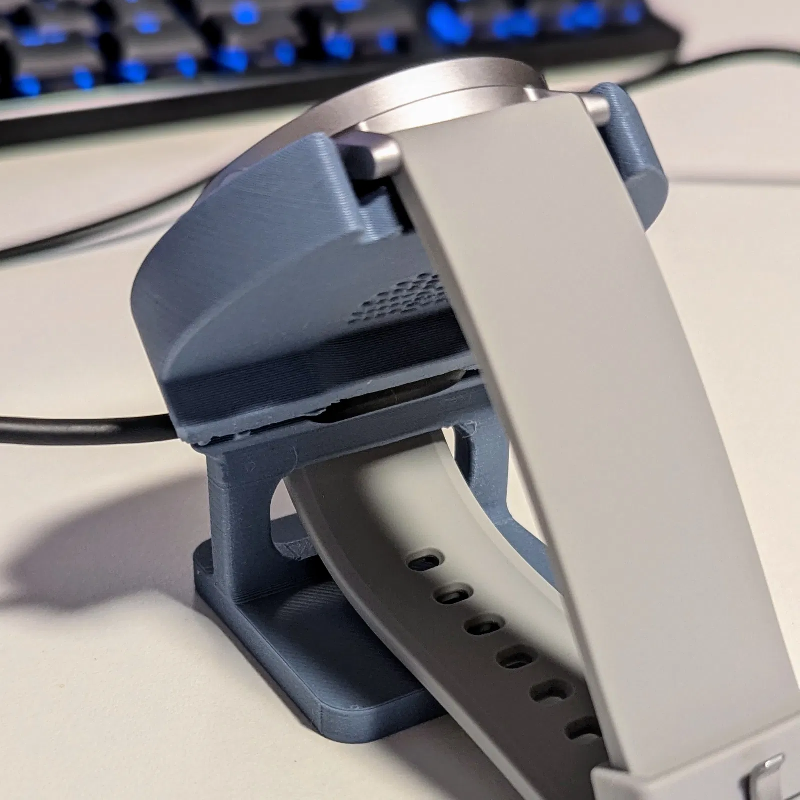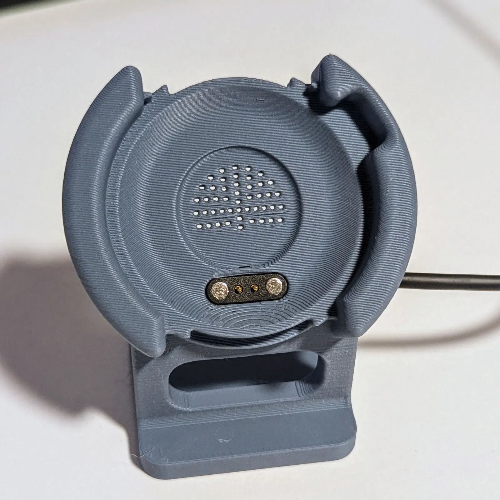 Dock/stand sạc cho CMF Watch Pro 2, có thêm bản “0,2mm” với miệng rộng hơn cho connector. In PLA với layer height 0.2mm, dùng tree supports cho overhang. Cáp sạc gắn được trái hoặc phải.