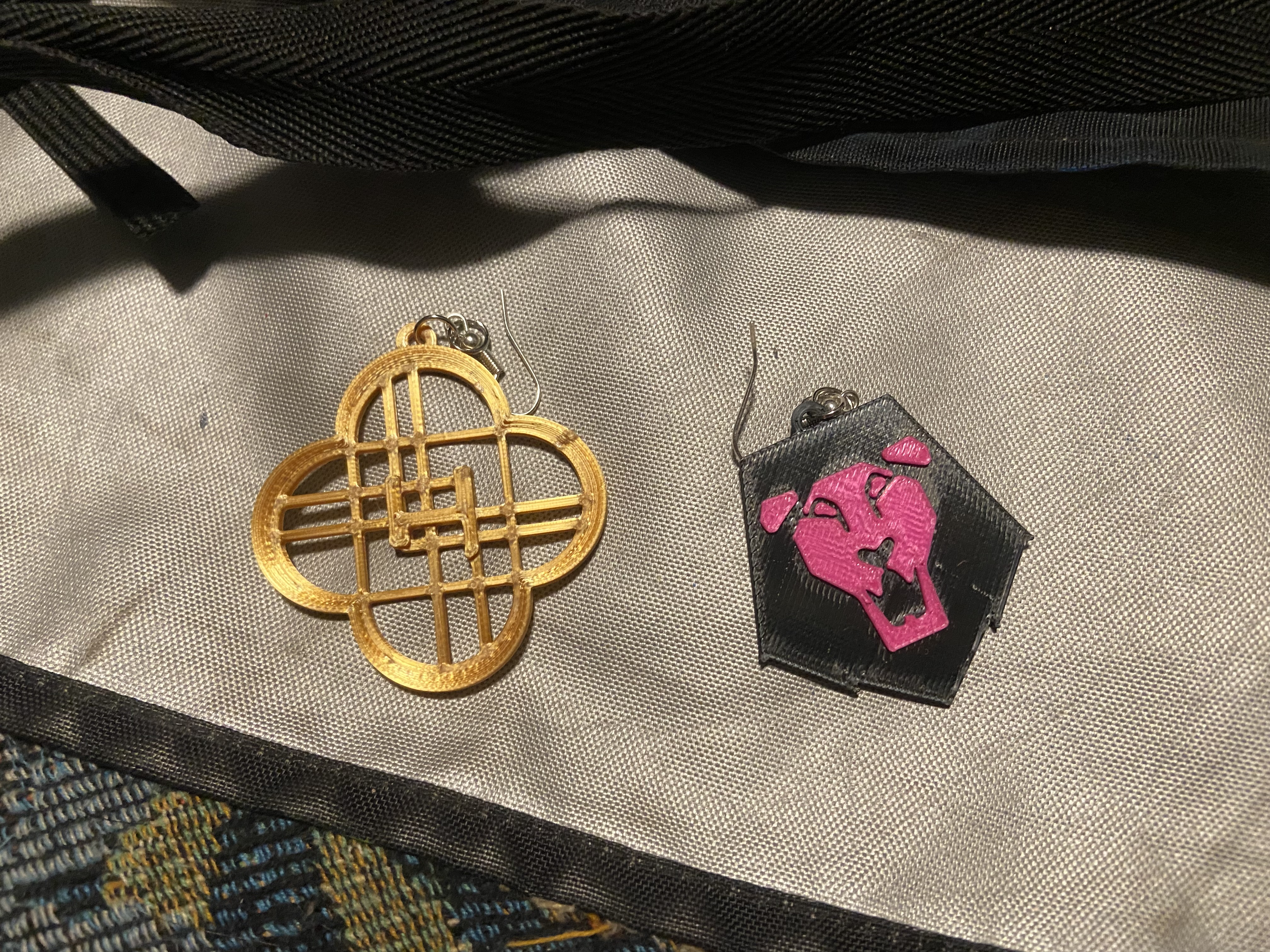 Bộ medallion/charm logo Saja Boys và Huntrix (K-pop Demon Hunter), dùng làm bông tai hoặc vòng cổ tùy size. In tốt với PLA/PETG, hợp máy in single color; có nhiều phiên bản, dễ in và vui.