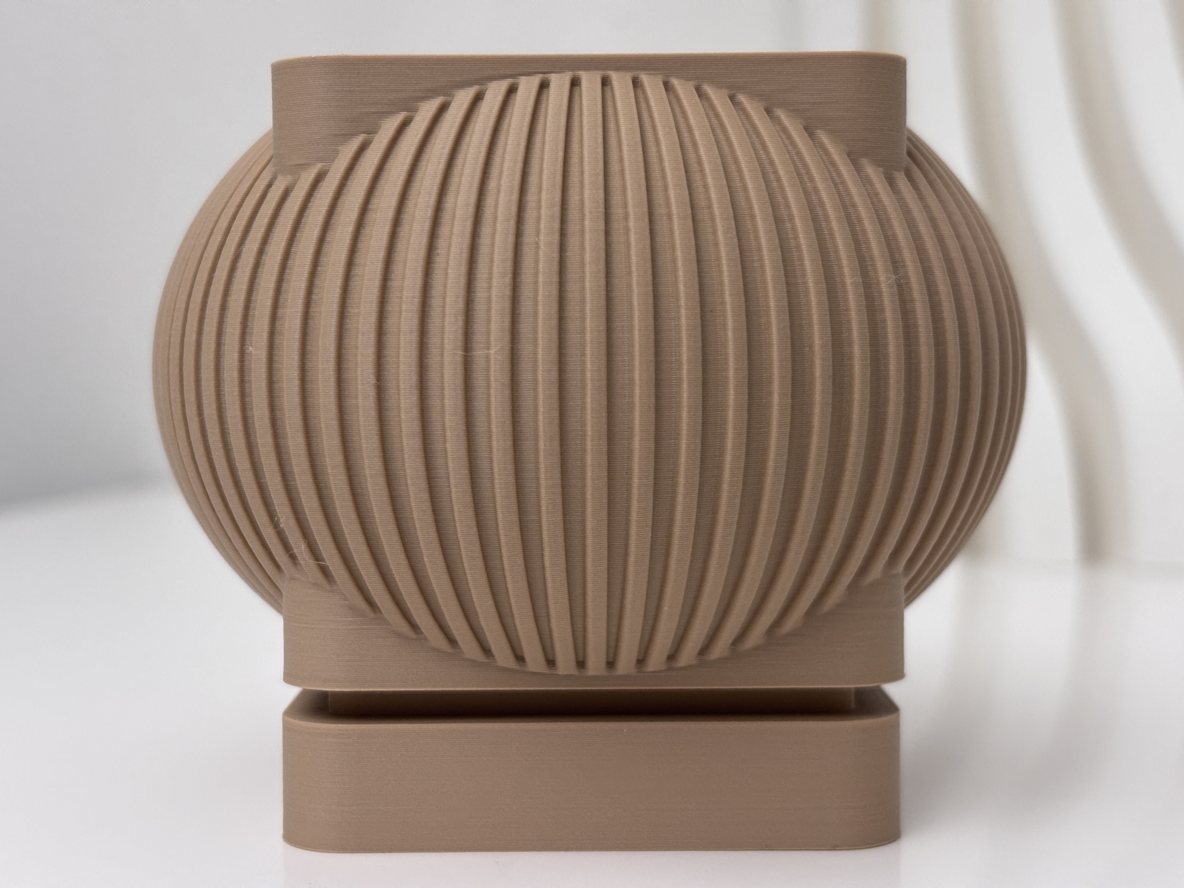 Để ra được thẩm mỹ đẹp nhất, mình rất khuyên dùng filament PLA Wood hoặc loại có hiệu ứng vân gỗ. Những bản in bạn thấy trong hình được in bằng Bambu Lab PLA màu Latte Brown.