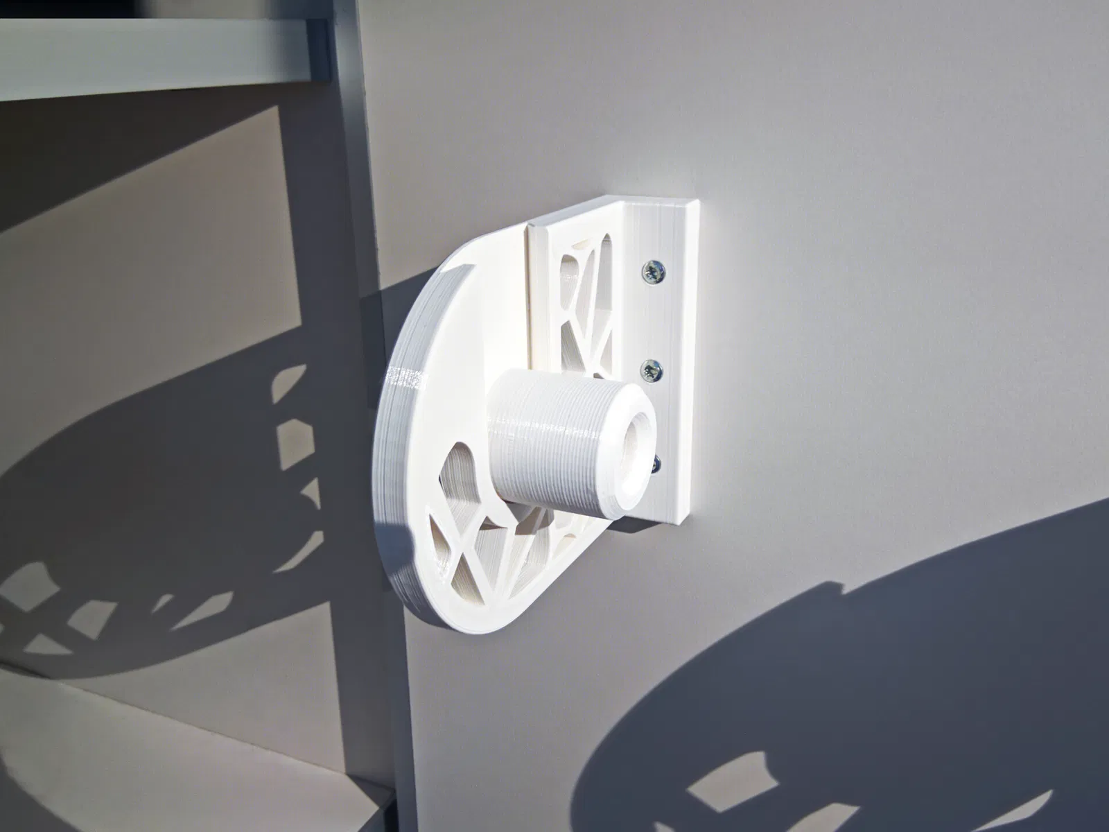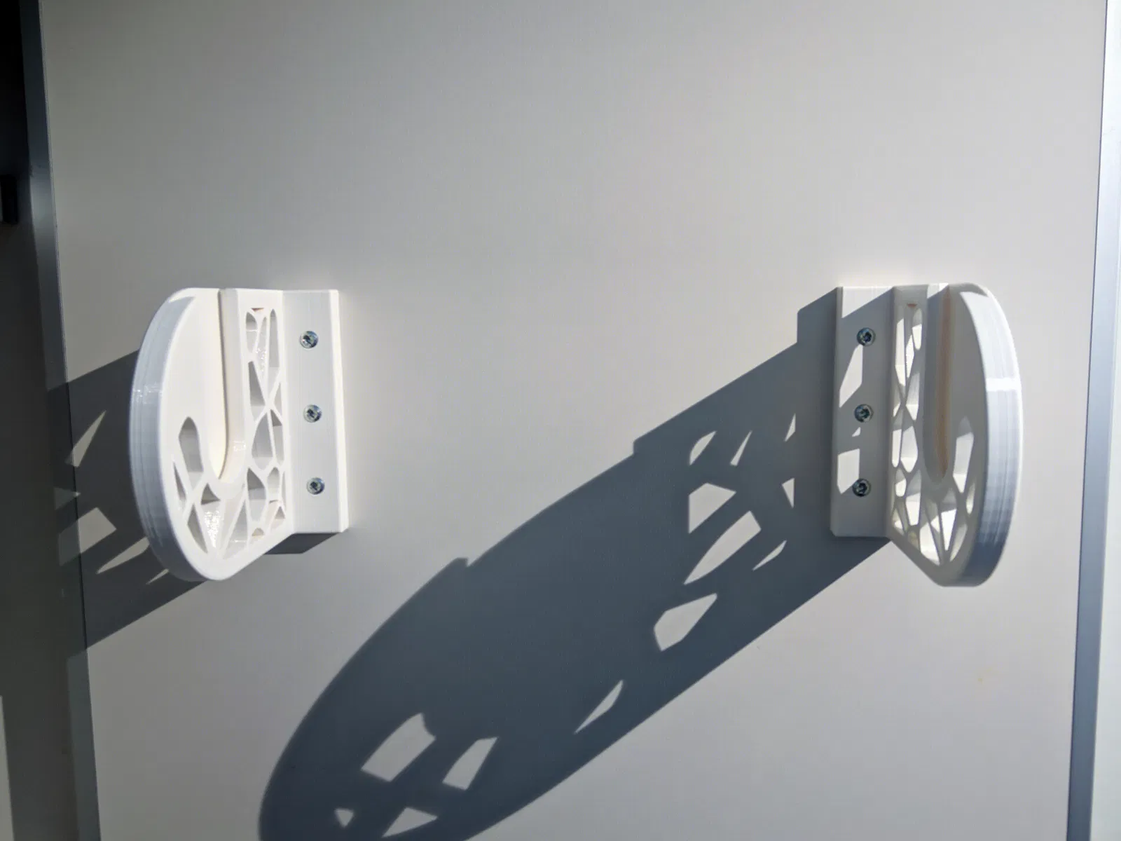 Những cái bracket kiểu Voronoi này có thể dùng làm bộ nhả giấy lau bếp (paper towel dispenser), bộ nhả khăn giấy lau xưởng (shop towel dispenser), hoặc thậm chí làm bộ nhả giấy vệ sinh (toilet paper dispenser). Bạn cần in phần insert 2 cái, y như bracket vậy. Nhớ là bracket thứ hai khi in thì phải mirror lại nha!