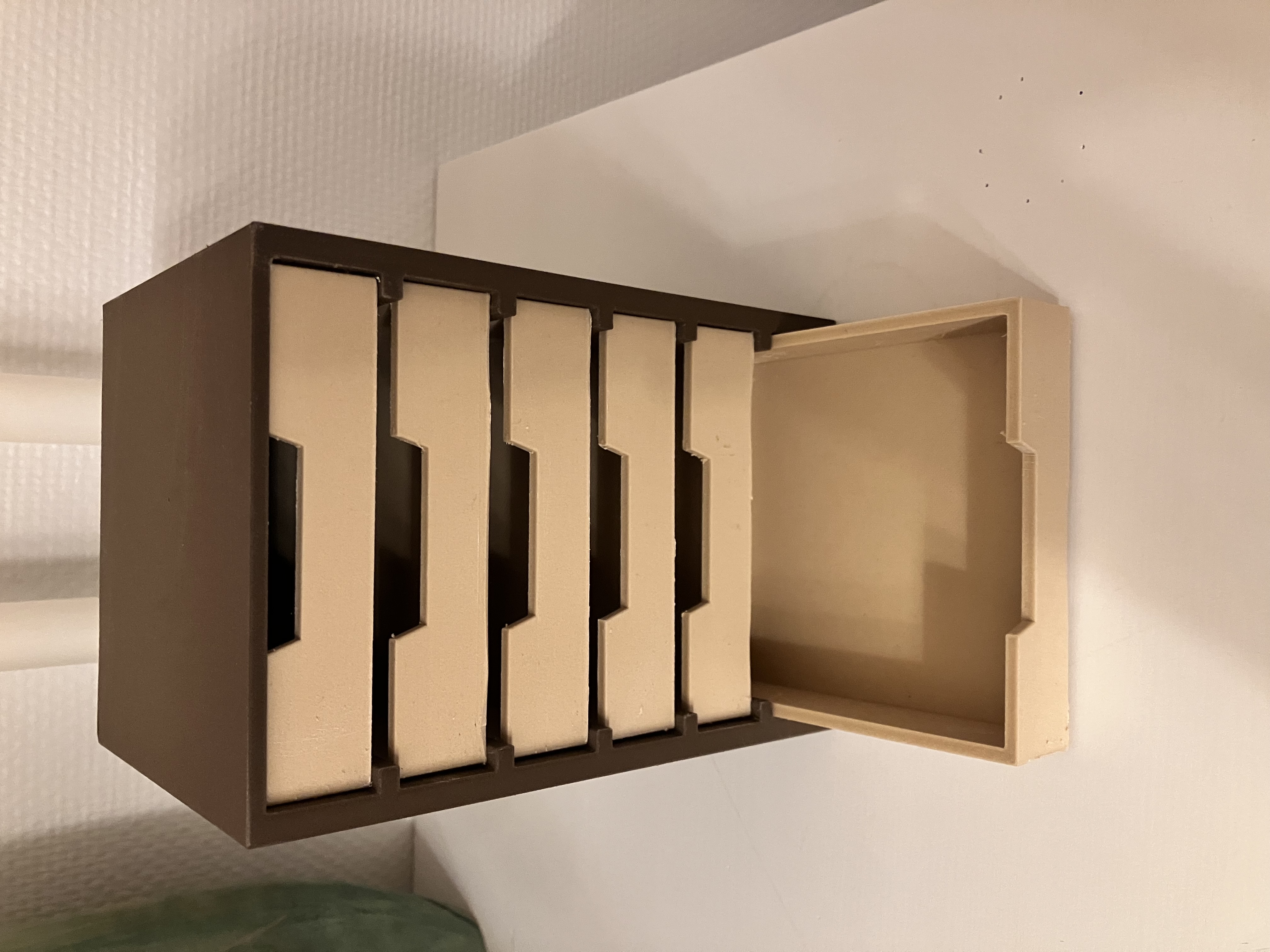 Mẫu Drawer orginizer kiểu dáng hiện đại cho đồ dùng trong nhà. File đã canh kích thước để lắp vừa; nếu muốn scale lớn hơn, hãy đưa cả hai model vào slicer và scale cùng tỉ lệ. Gợi ý in: brim, Woodfil PLA, 20% infill.