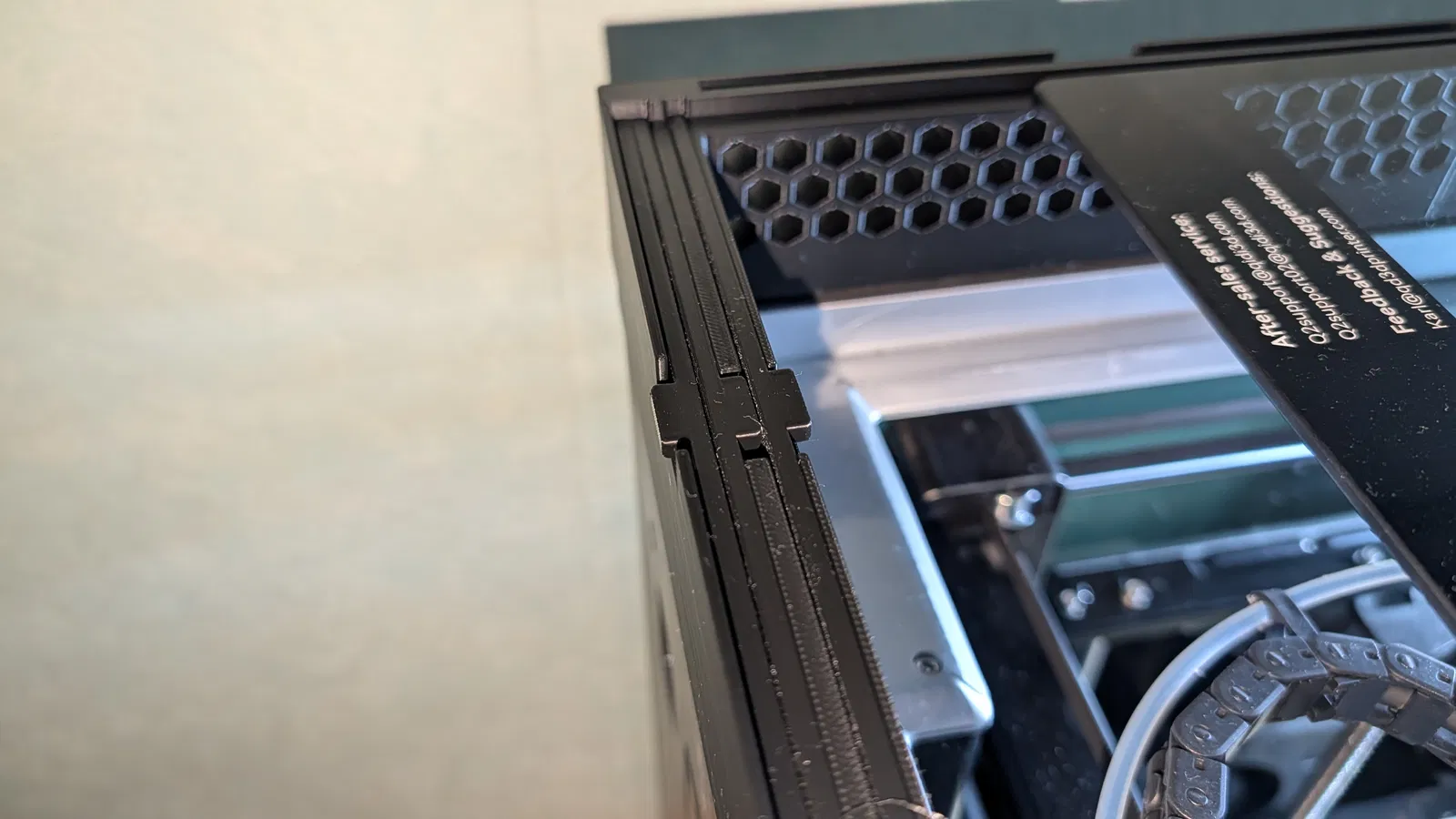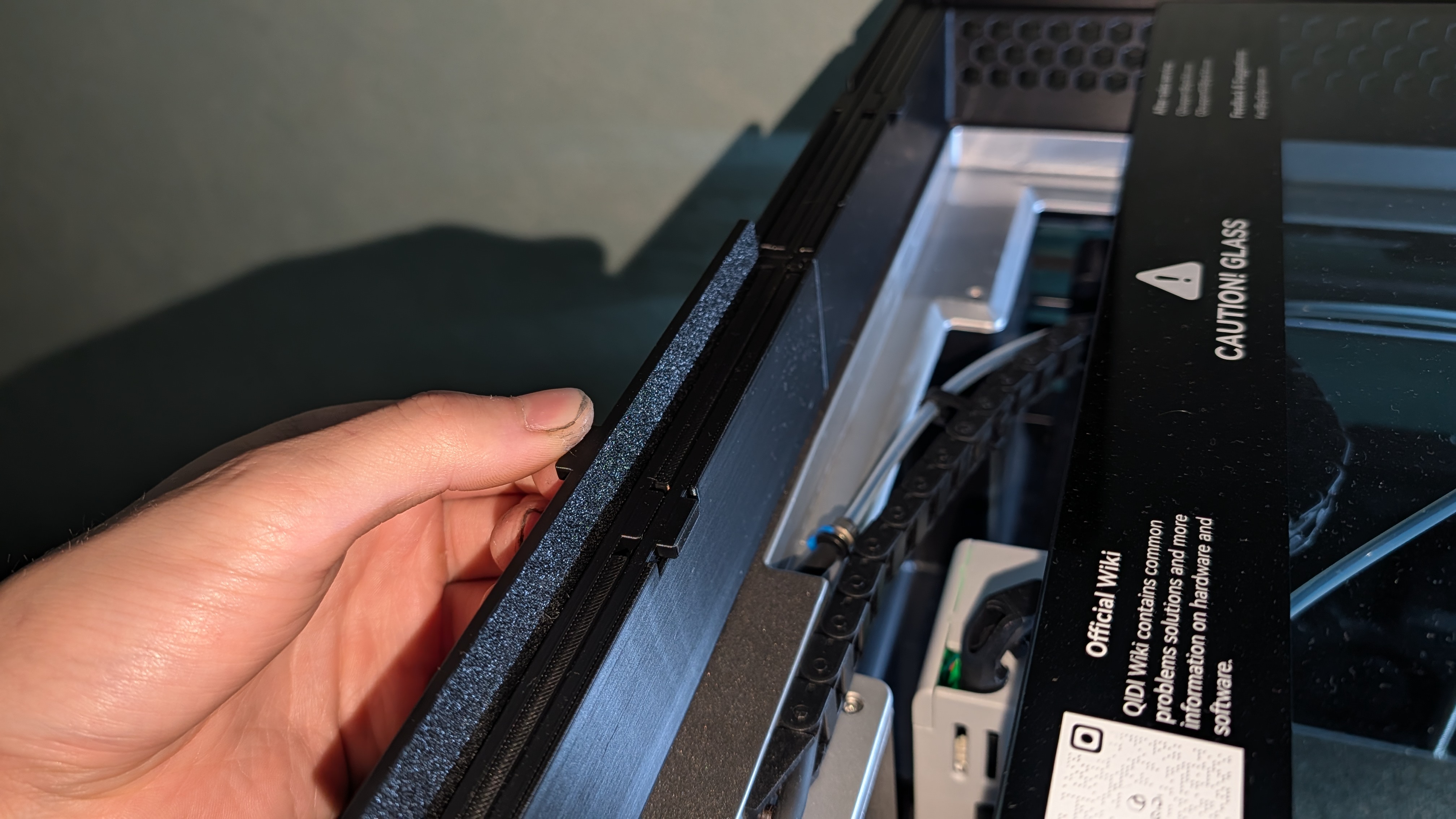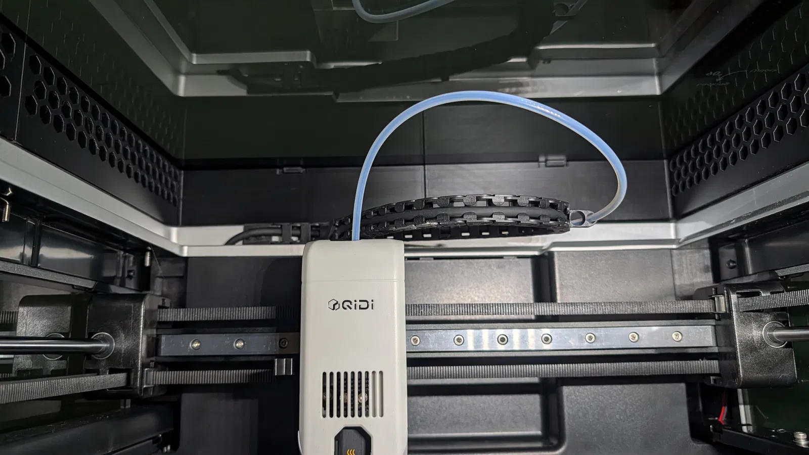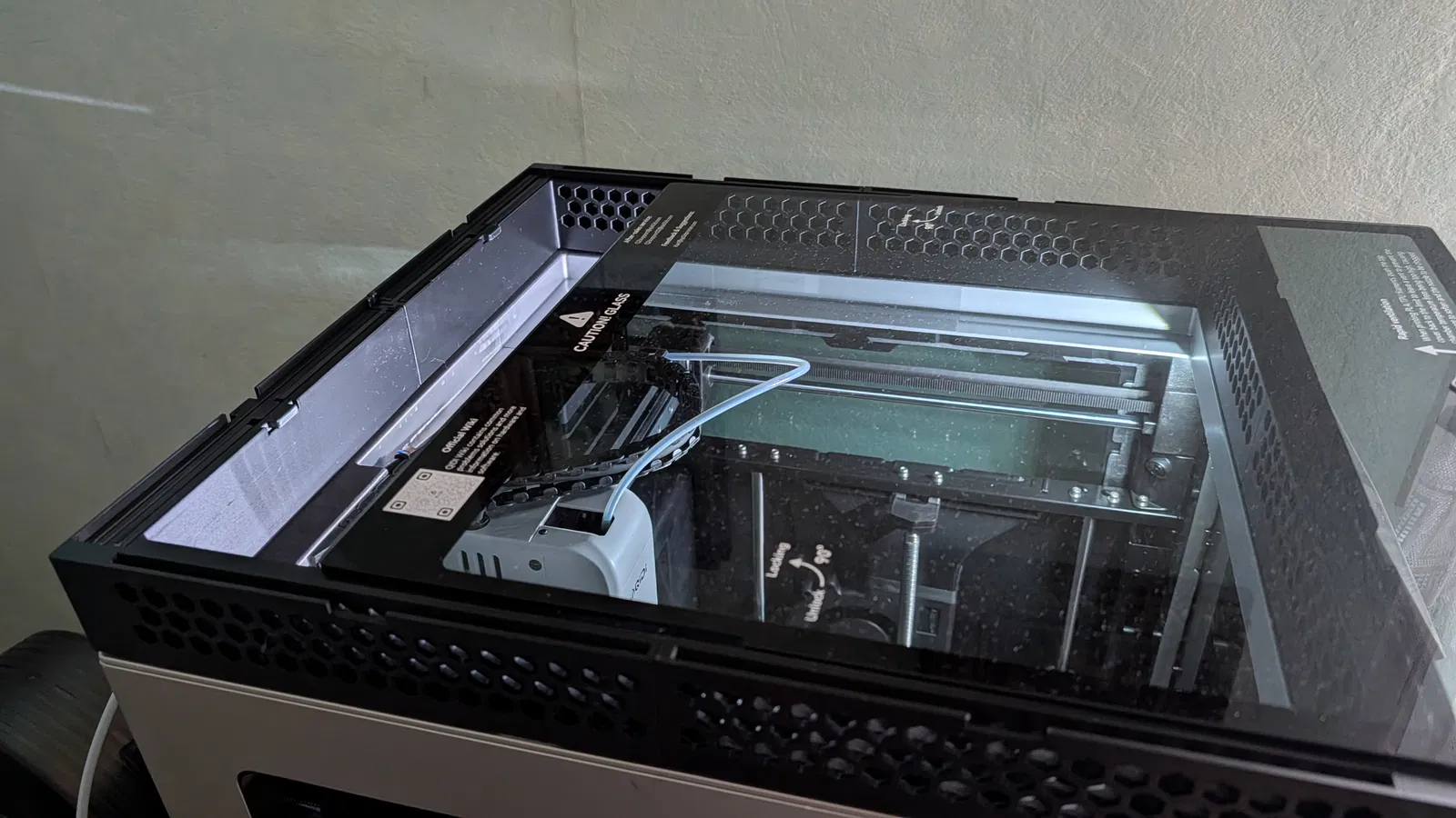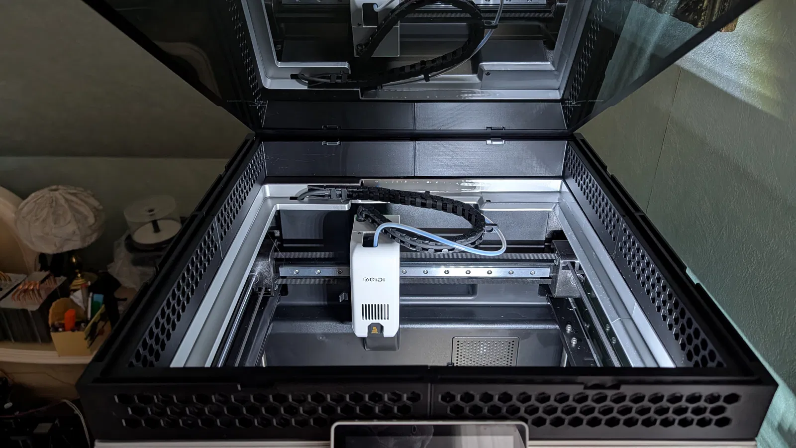 Qidi Q2 Riser được thiết kế lại để nâng nắp kính cao hơn ~45 mm, tránh ống PTFE cạ vào kính và giúp máy chạy mượt hơn. Có 6 khay tháo rời để tăng airflow, có thể cất gọn phía sau riser.