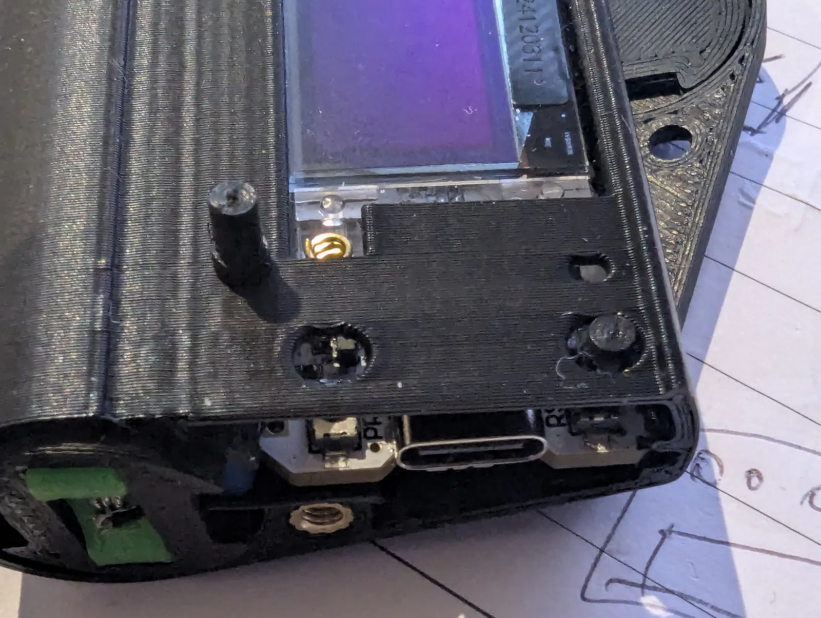 - Nếu chưa làm, luồn dây âm qua lỗ nhỏ cạnh heatset insert.