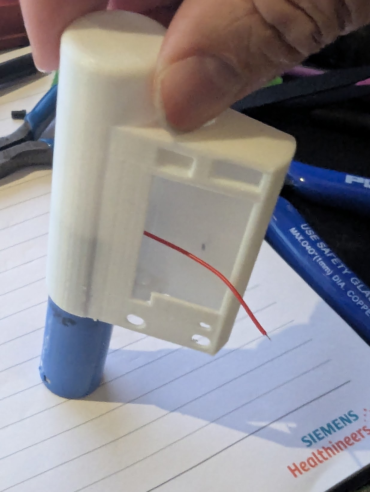 Mình dùng PLA cho mọi thứ trừ phần tiếp điểm pin. PLA có thể vẫn chạy được, nhưng ABS hoặc PETG sẽ cho độ “lò xo” như mong muốn hơn và ít bị gãy hơn.