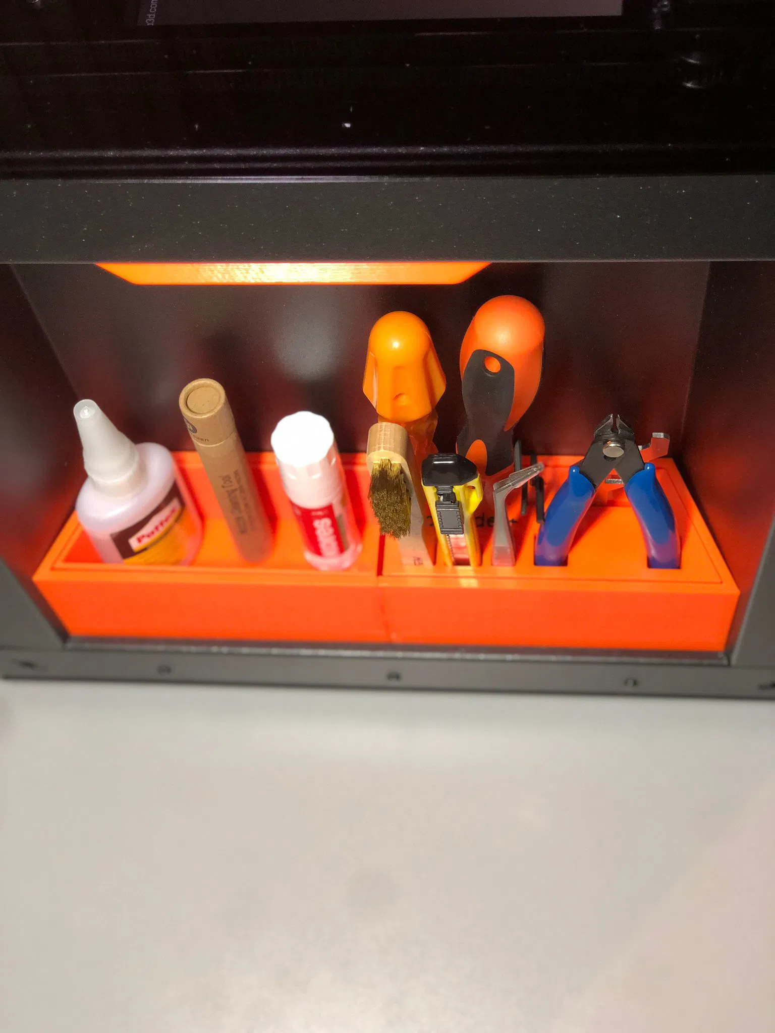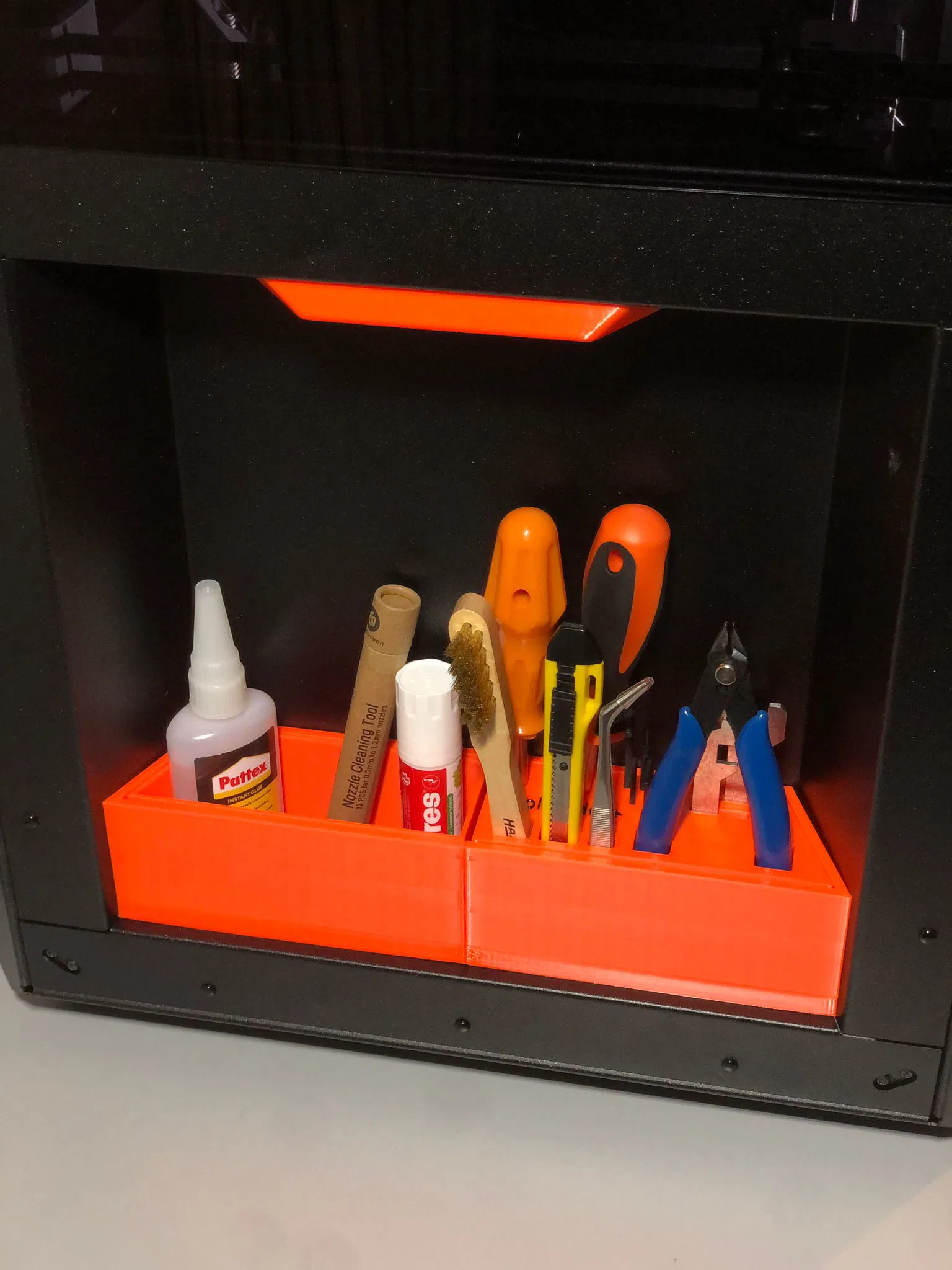 toolBox+ dùng nam châm để gắn vào bên trái của Core One, có thể mở rộng với toolKit/storagekit. Sử dụng nam châm 6x2mm ép vào lỗ, và nhớ bật support trong slicer do đáy bị làm phẳng.