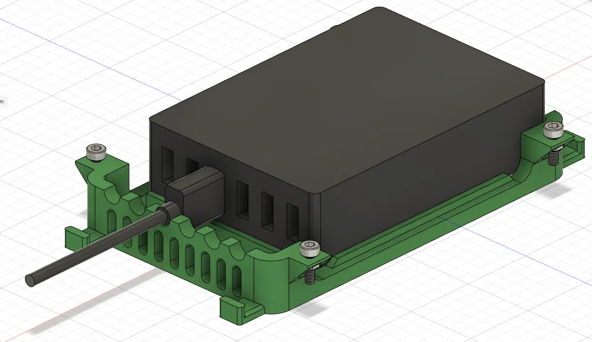 Vỏ open enclosure này được thiết kế để giữ chặt các dây USB trên bộ sạc Aukey PA-T11 đang dùng ở phòng sinh hoạt chung của tụi mình, nhằm tránh bị lấy mất. Vỏ gồm 2 nửa (halfshells) và cần bắt vít lại với nhau bằng vít M3x10 kèm ê-cu. Ngoài ra còn có các điểm móc để siết dây rút (cable ties) như trong hình.