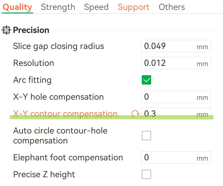 Vui lòng xem hình đính kèm và bật tính năng "XY Size/Contour Compensation" nhé!