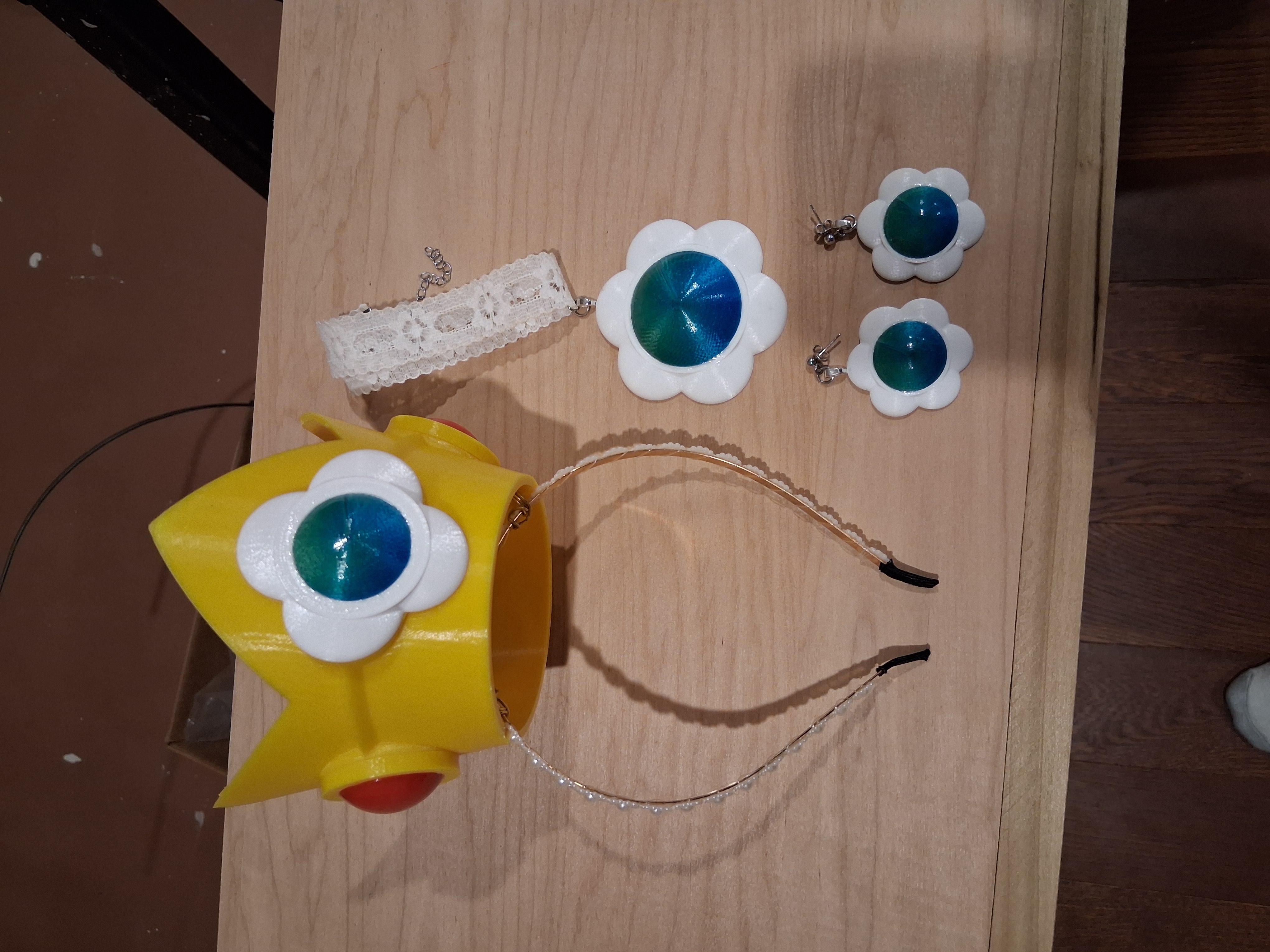 Trang phục Mario Daisy – Vương miện, vòng cổ & bông tai (3D print)