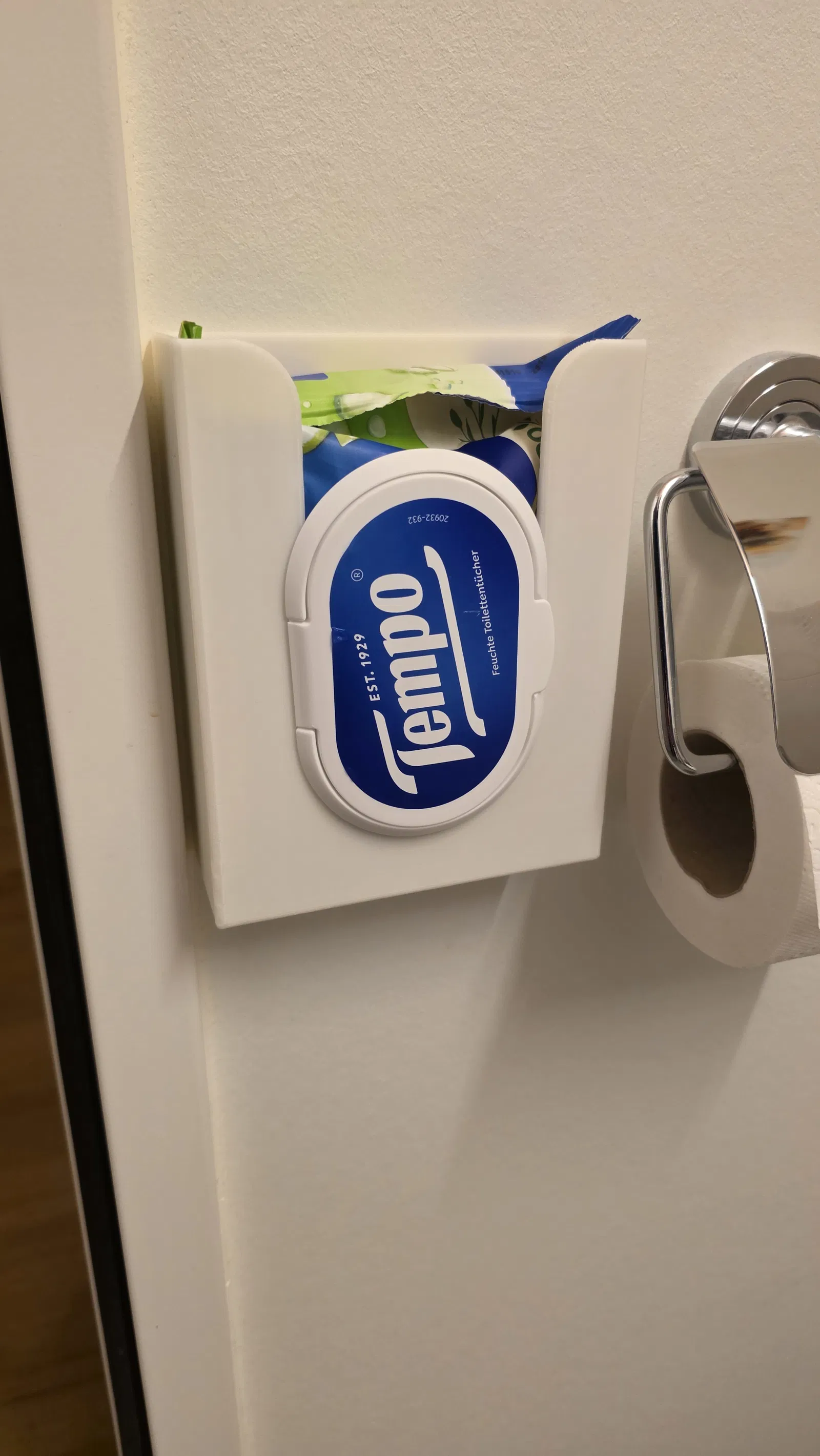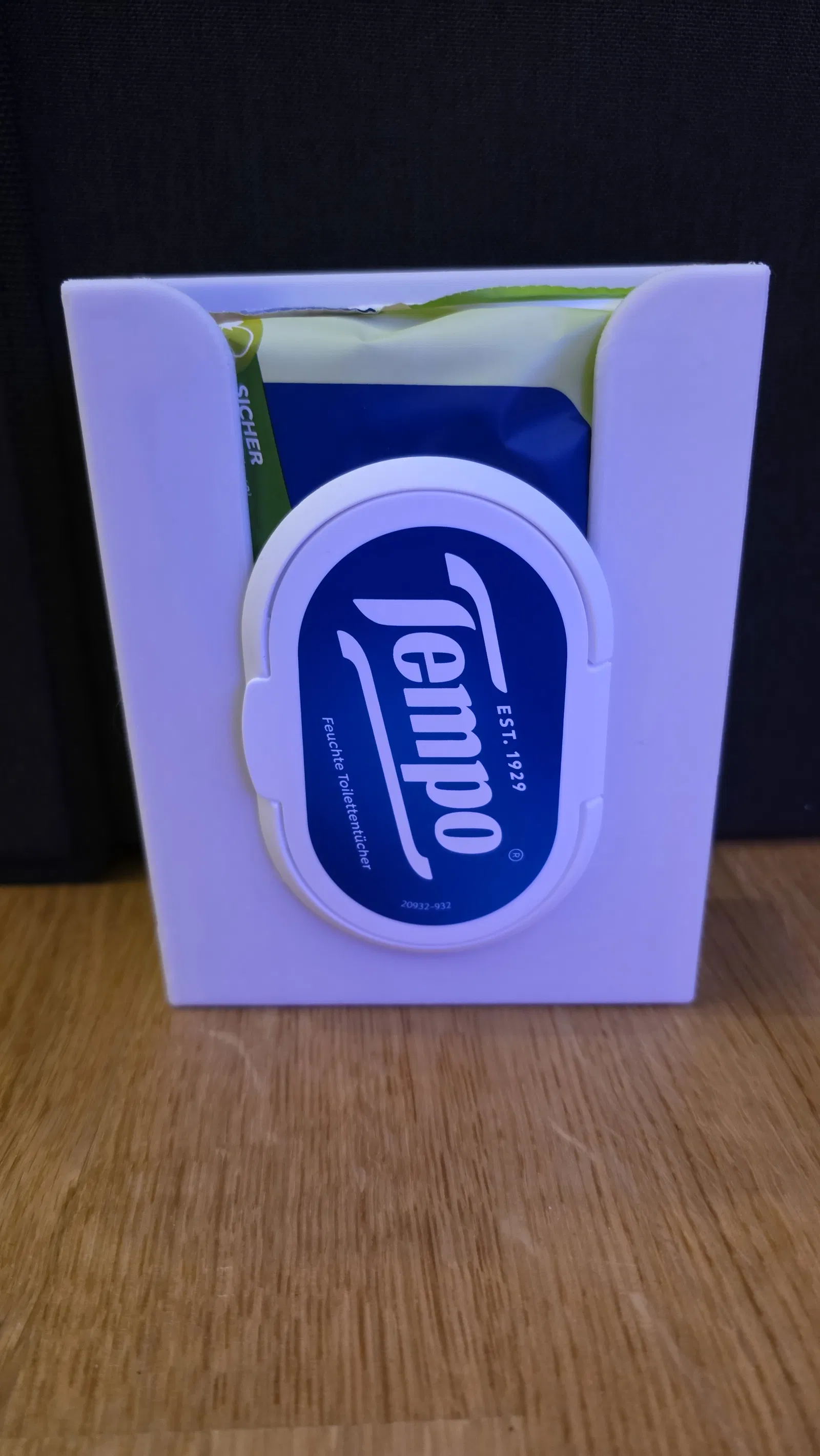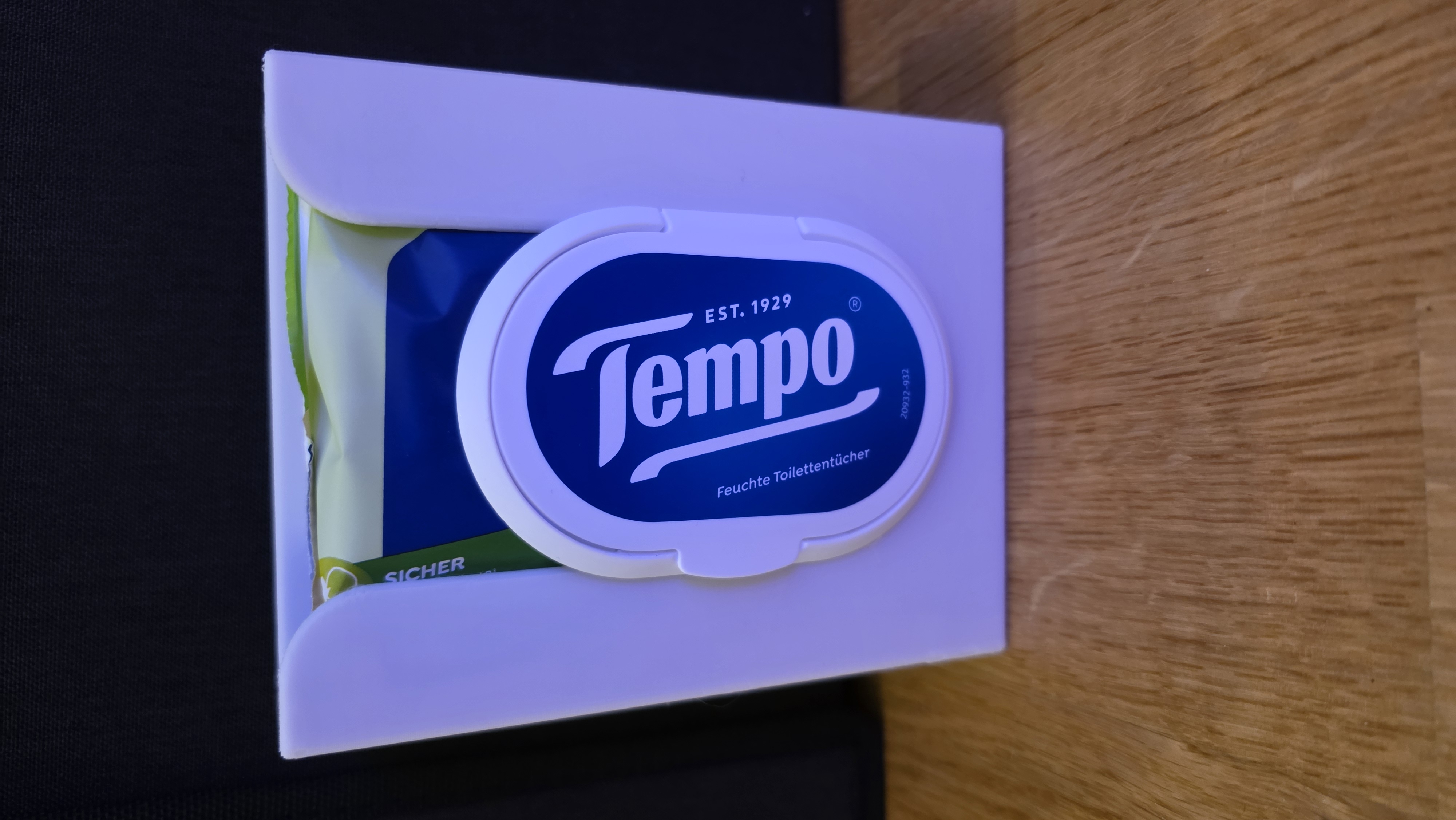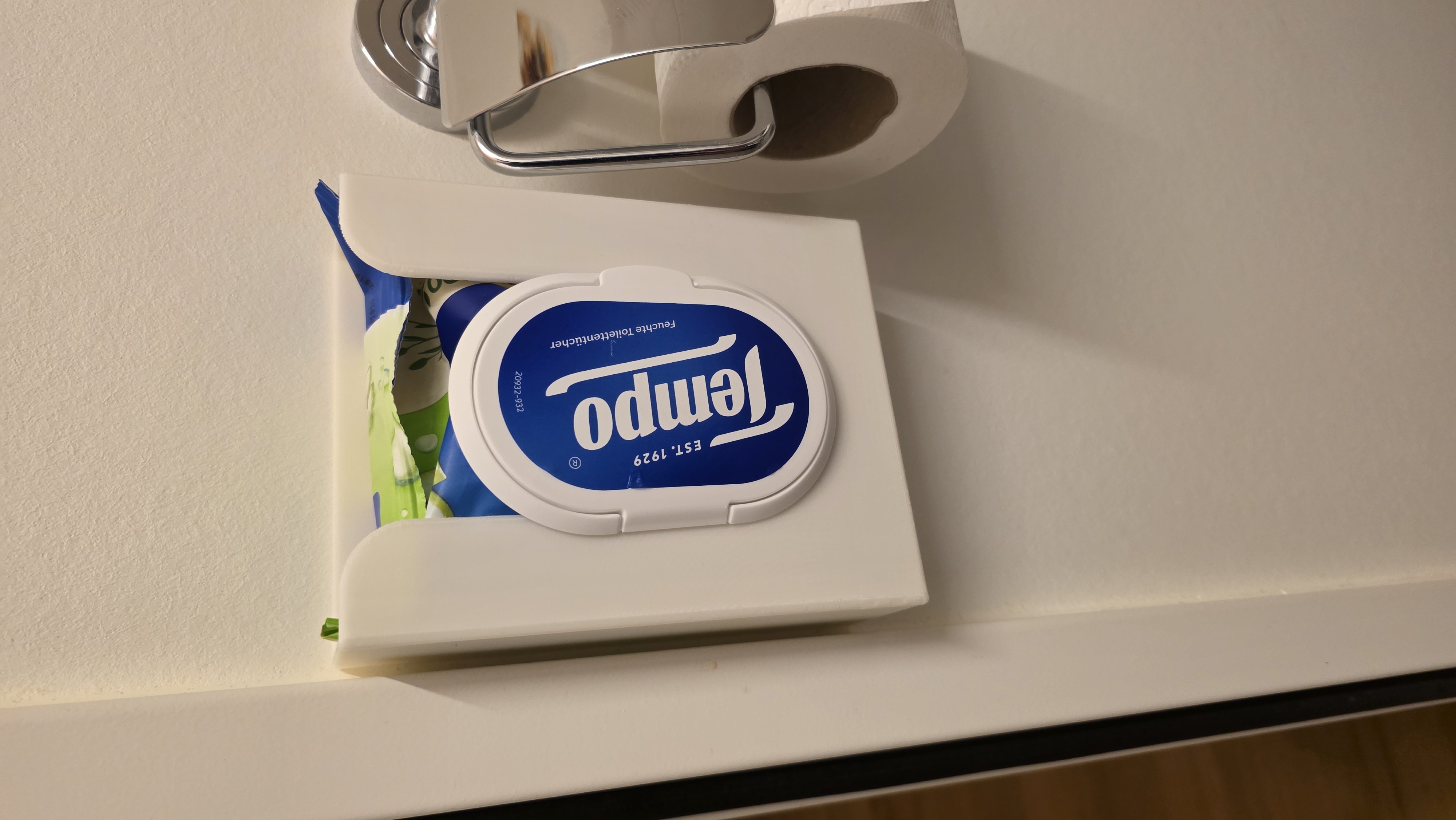 Khay đựng khăn ướt gắn tường đơn giản, thực dụng, không cần khoan. Gắn bằng miếng keo dán Tesa tháo được. In ở layer height 0.28 mm, thời gian in khoảng 2 giờ.
