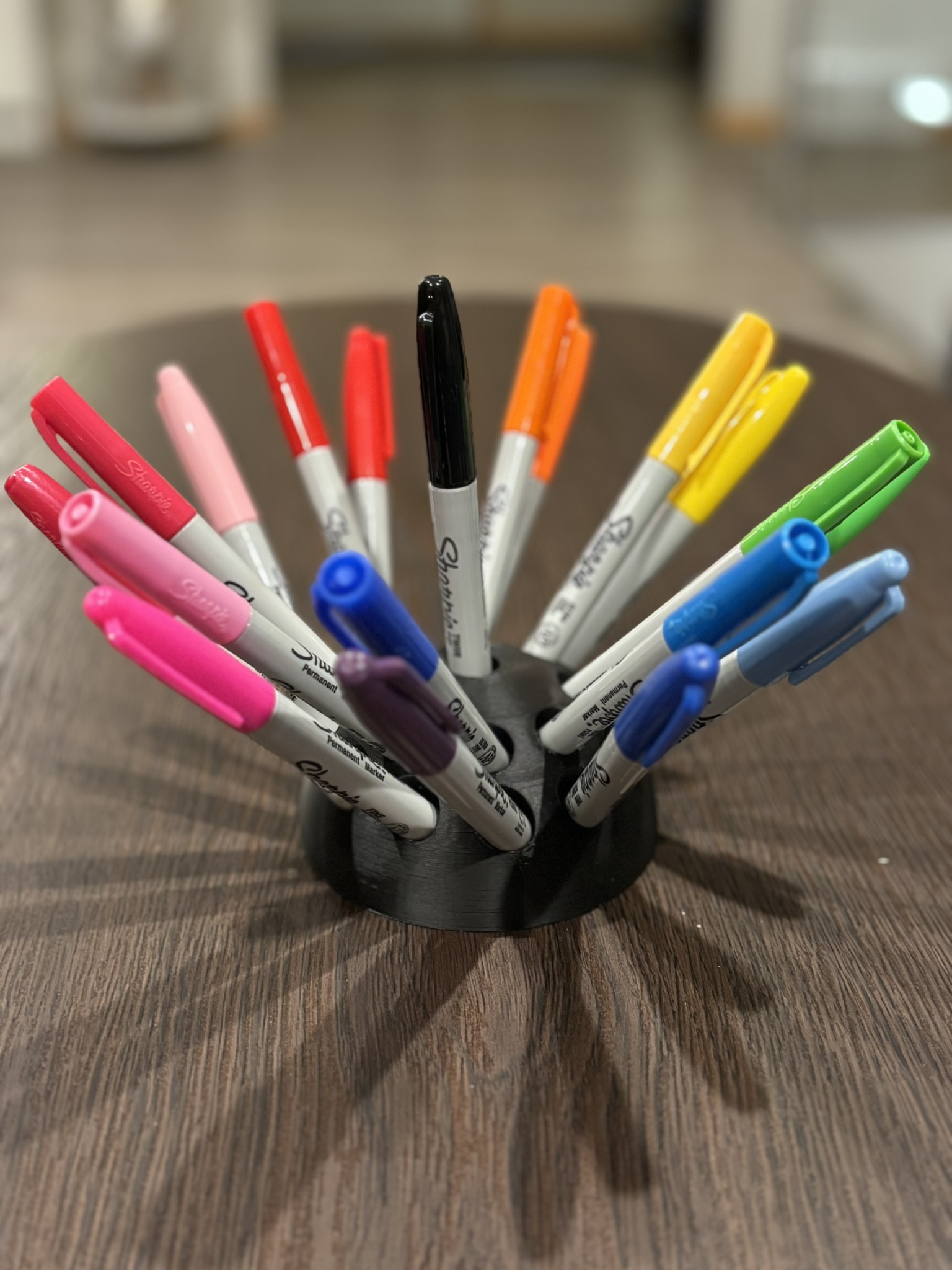 Chân đế này in bằng PLA, không cần hỗ trợ, hoạt động tuyệt vời cho bút marker, Sharpies, và nhiều loại bút khác. Giúp bạn trưng bày bút một cách gọn gàng và đẹp mắt.