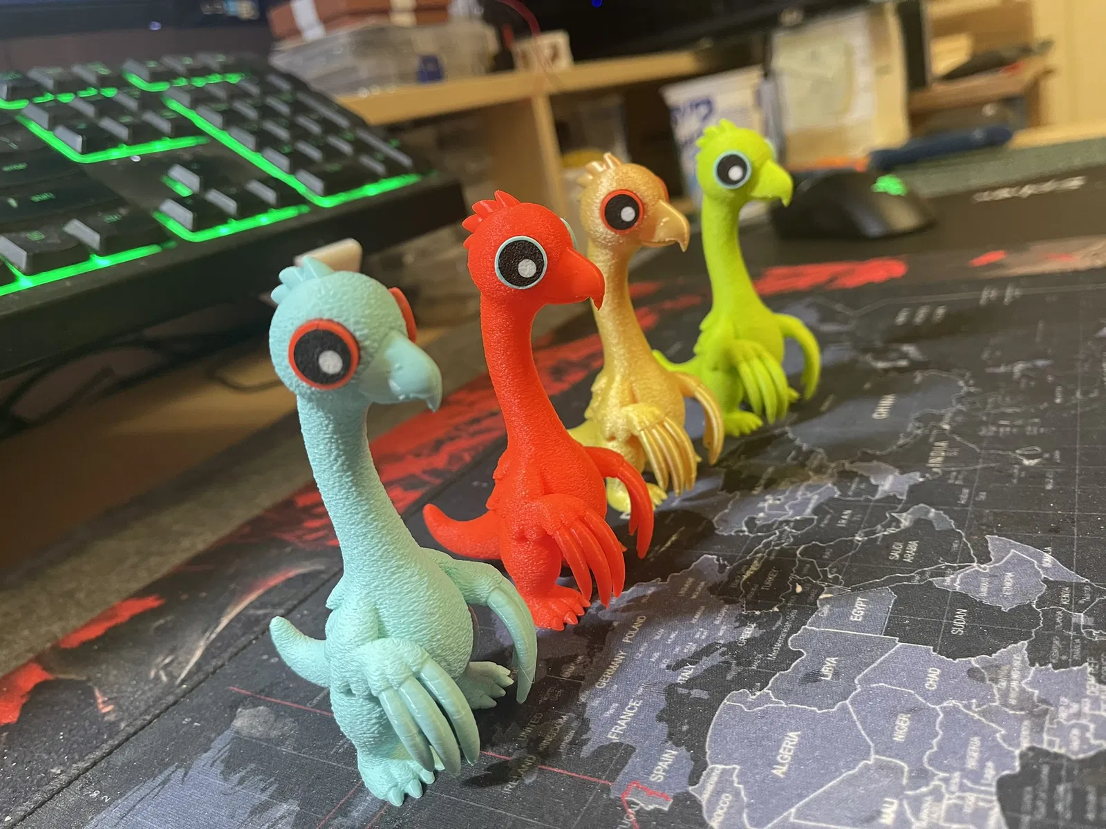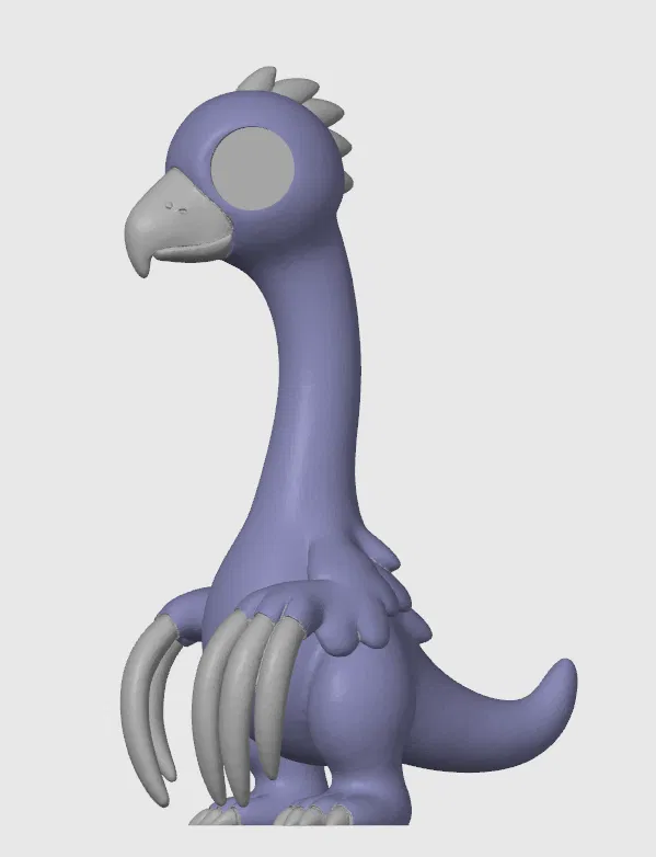 Meet RAZORCLAW – an adorable cartoon‑style therizinosaurus with big glossy eyes, soft rounded shapes, and his iconic long scythe‑like claws that give him a unique and charming silhouette. The model features sharp claws, which is important to keep in mind when deciding how to use it – it is primarily intended as a decoration. Razorclaw has a friendly, curious, slightly playful personality, looking more like he wants to give you a hug than scratch you. He’s perfect as a cute desk companion, a fun gift for dinosaur lovers, or a cheerful decoration for a child’s room. His joyful presence instantly brightens any space. IMPORTANT NOTE: This model is considered challenging to print. In roughly 2 out of 10 test prints, the claws broke during printing. Slowing down the print speed helped significantly, and using a different filament also improved results. All tests were done with PLA – four colors printed fine, while a fifth color caused repeated issues.