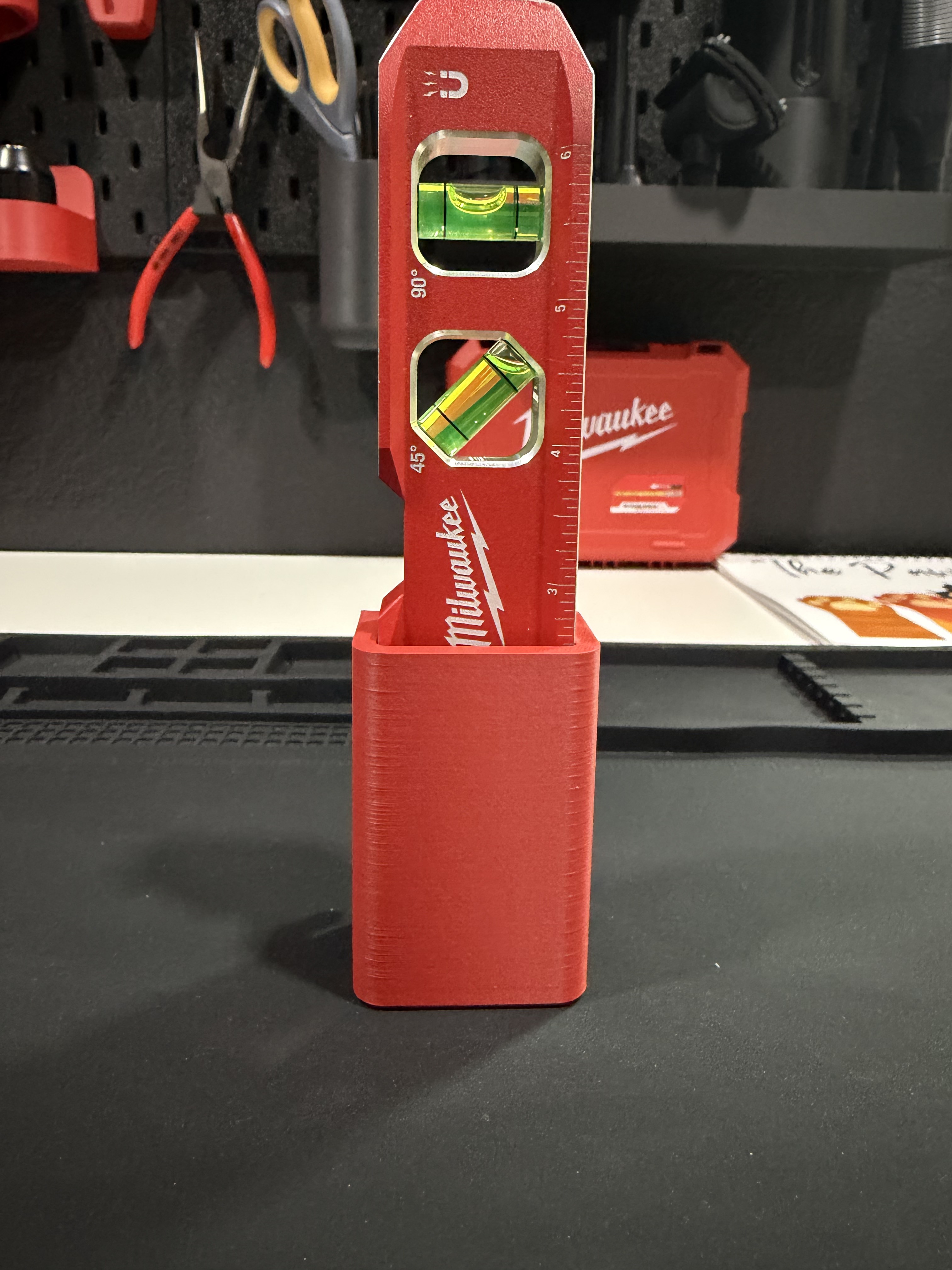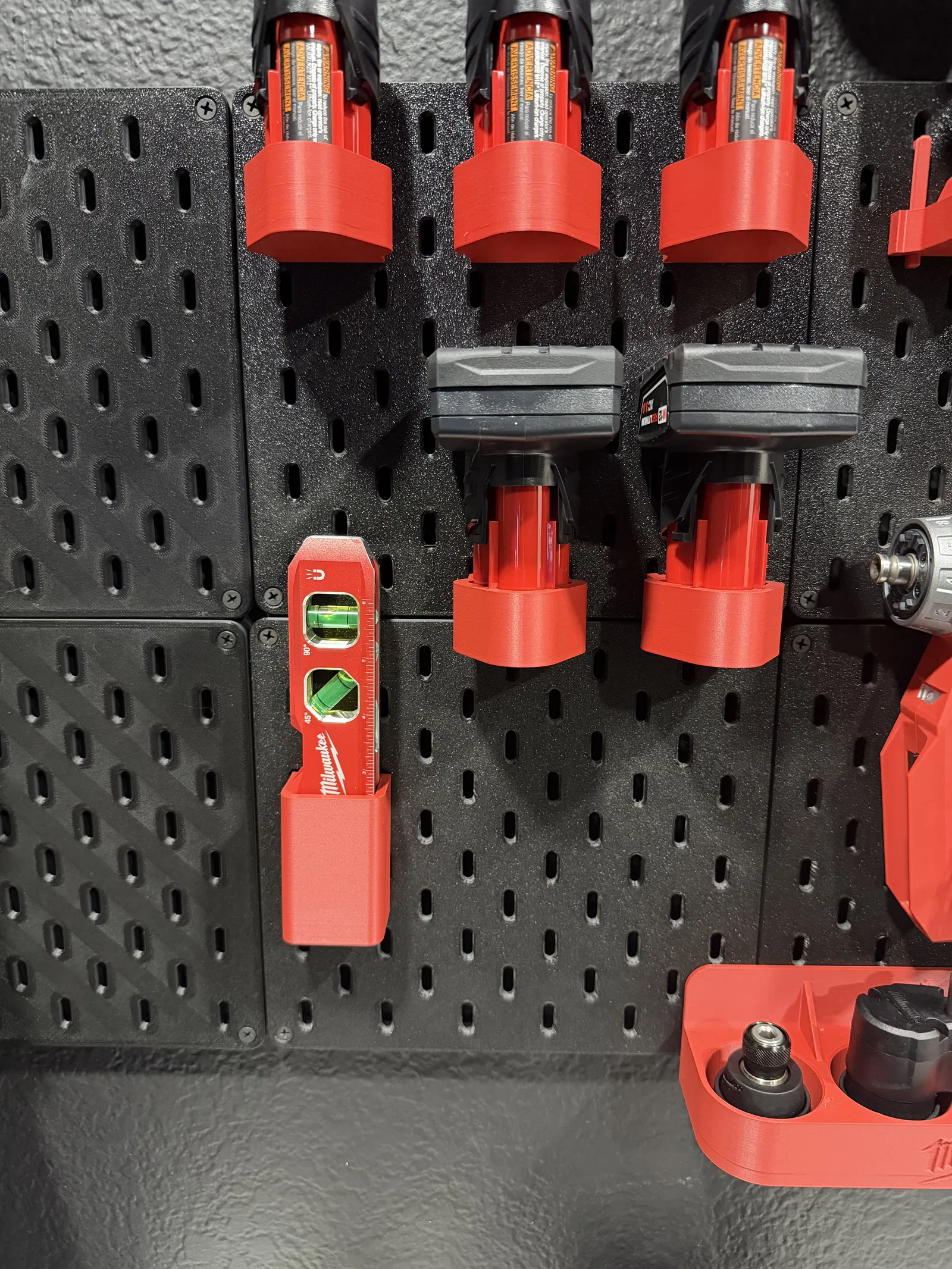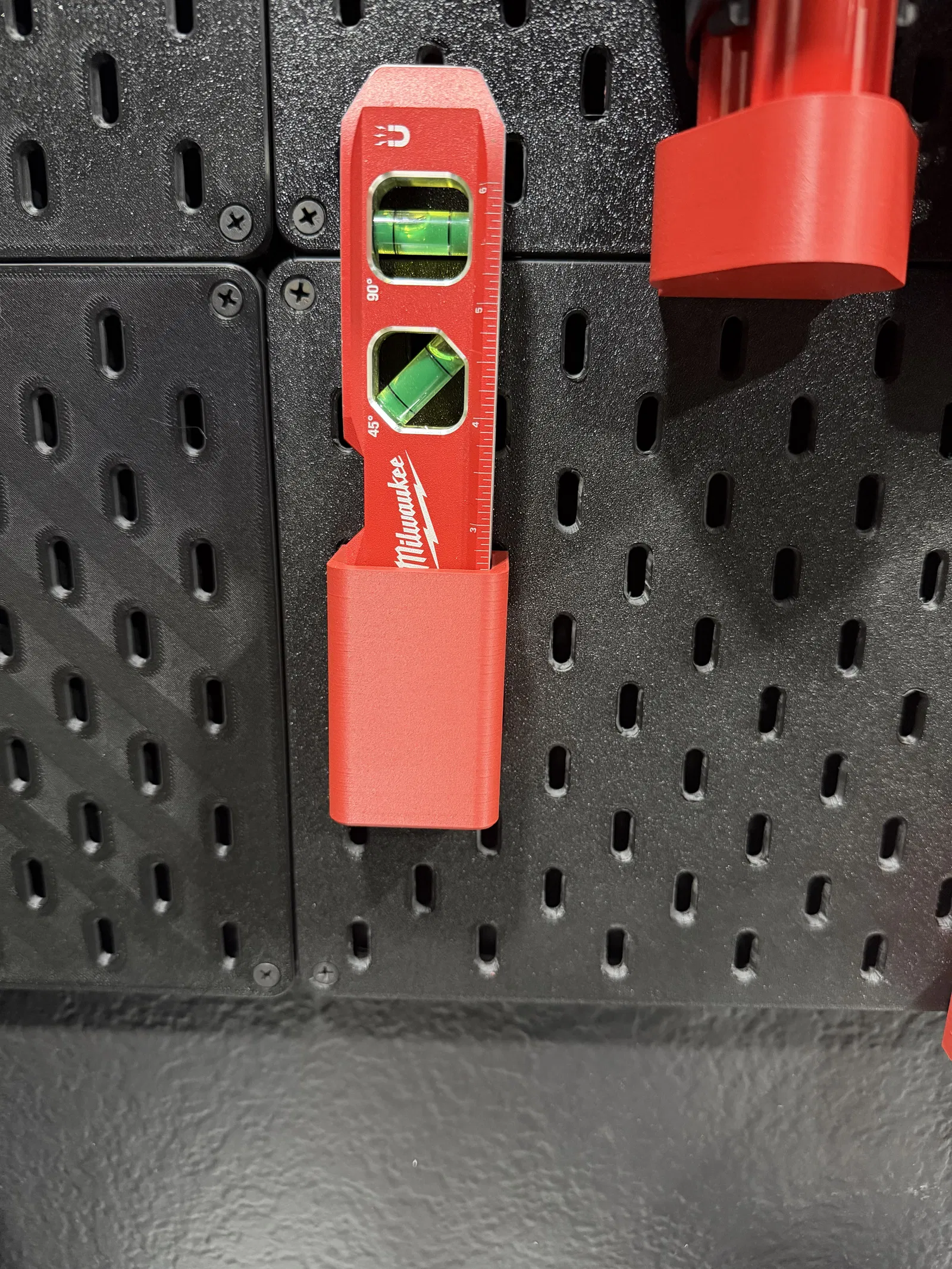 Giá đỡ Skadis cho Thước Lỗ Ban Milwaukee 7 inch. Vừa khít, không bị lung lay. In với vật liệu hỗ trợ ở phần móc, dùng PETG làm lớp giao diện hỗ trợ. Bạn có thể thay đổi cài đặt in theo ý thích.