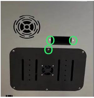 Anh em cần tháo và tái sử dụng ba con ốc tôi khoanh tròn trong hình dưới đây để gắn cái máng. Nếu cái quạt của anh em nhô ra khỏi tấm che phía sau thì mod này sẽ không gắn vừa đâu nha.