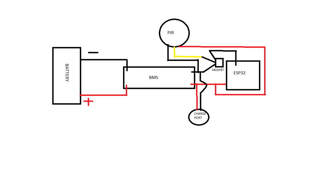 Mình dùng MOSFET để bật/tắt nguồn cho module ESP32 bằng tín hiệu analog output từ module PIR. Cách này giúp không có dòng tiêu thụ thêm từ ESP32 đang “sleeping”.