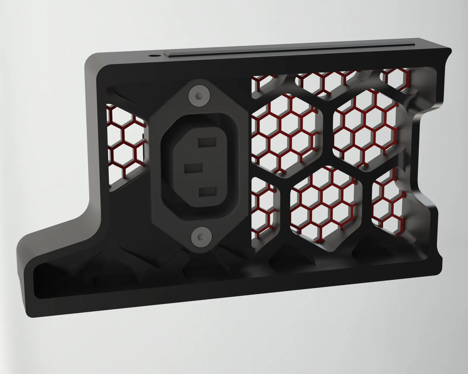 Mình muốn một cổng C13 dạng panel mount nhưng có thêm phần lưới (mesh). Mình tìm không thấy mẫu nào kiểu vậy, nên mình làm cái này dựa trên file STL từ bản upload gốc.
